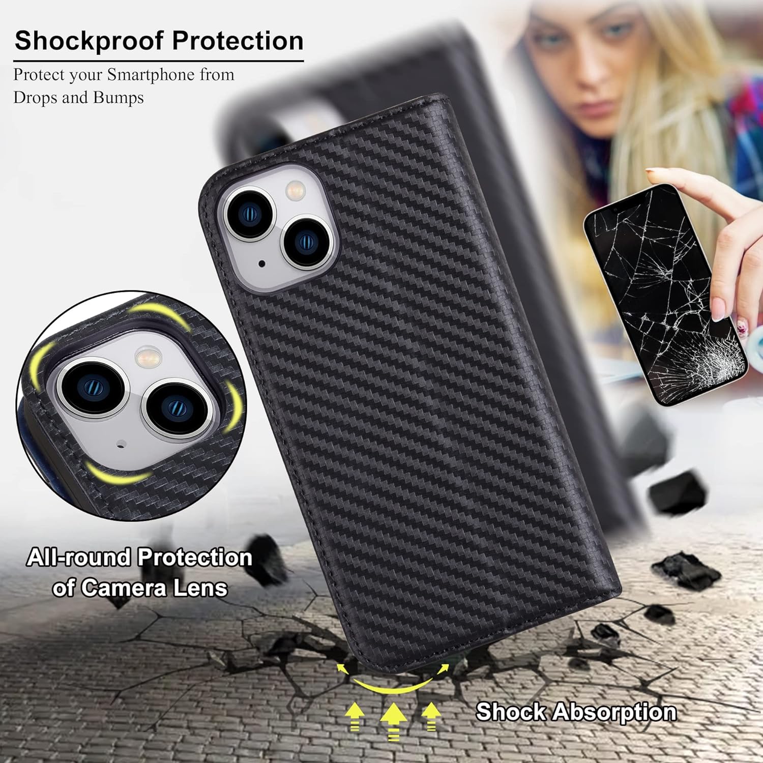 - 【100 % Carbon Leder】: iPhone 14 PlusLederhüllen aus hochwertiger Kohlefaser, langlebig, atmungsaktiv und weich. Das Leder behält die Festigkeit der Fasern und die natürliche Textur der Oberfläche, wodurch jede Handyhülle einzigartig ist.