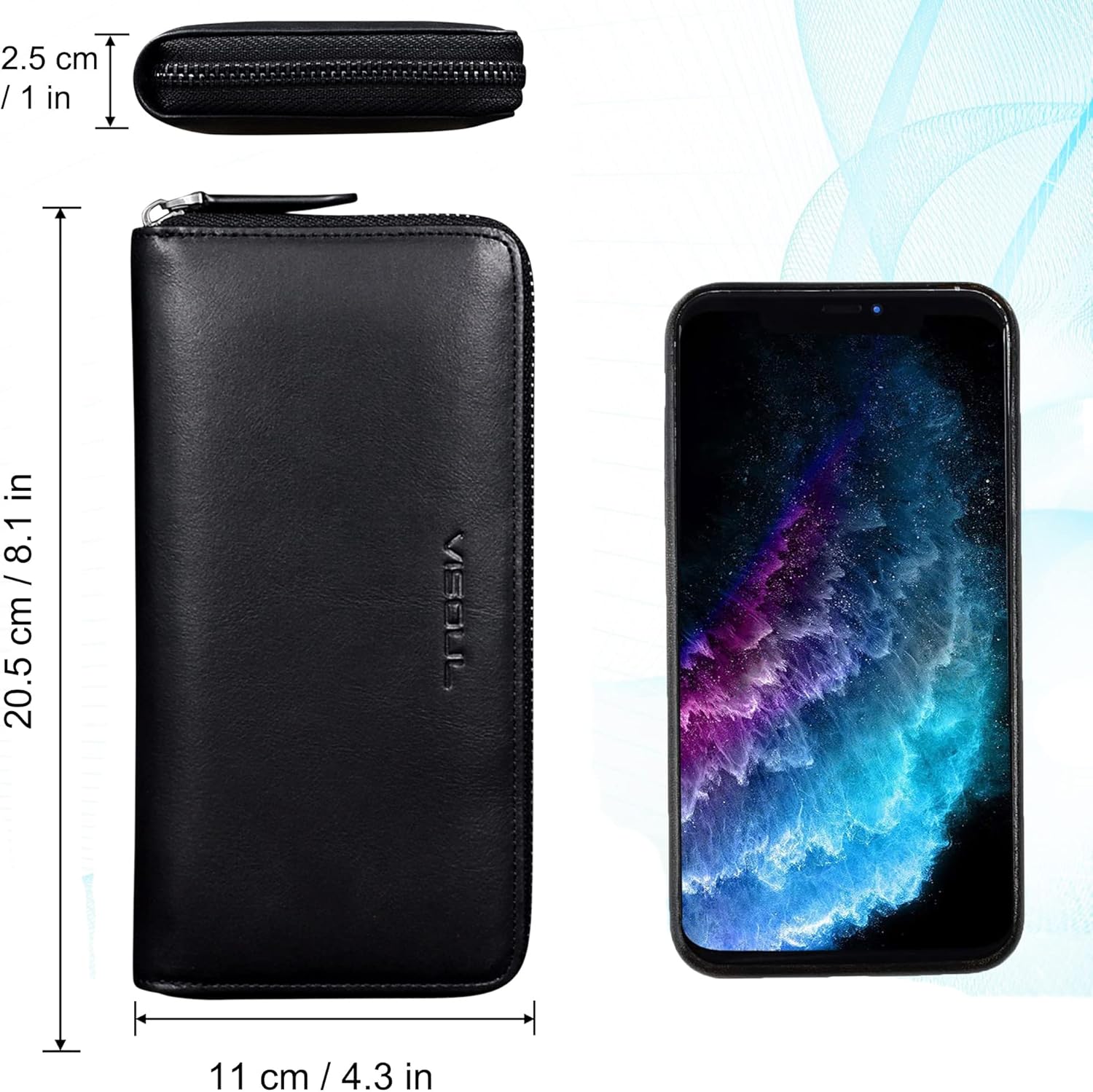 - ✔Grosse Kapazität-Diese minimalistische Geldbörse misst 20 cm × 10 cm × 2,5 cm (L x W x H) . 8 x Kartenfächer, 2 Seitentaschen, 1 grosse Reissverschlusstasche ( Innenfach mit Reissverschluss für Münzen, Schlüssel, Ringe, Halskette usw),3 x