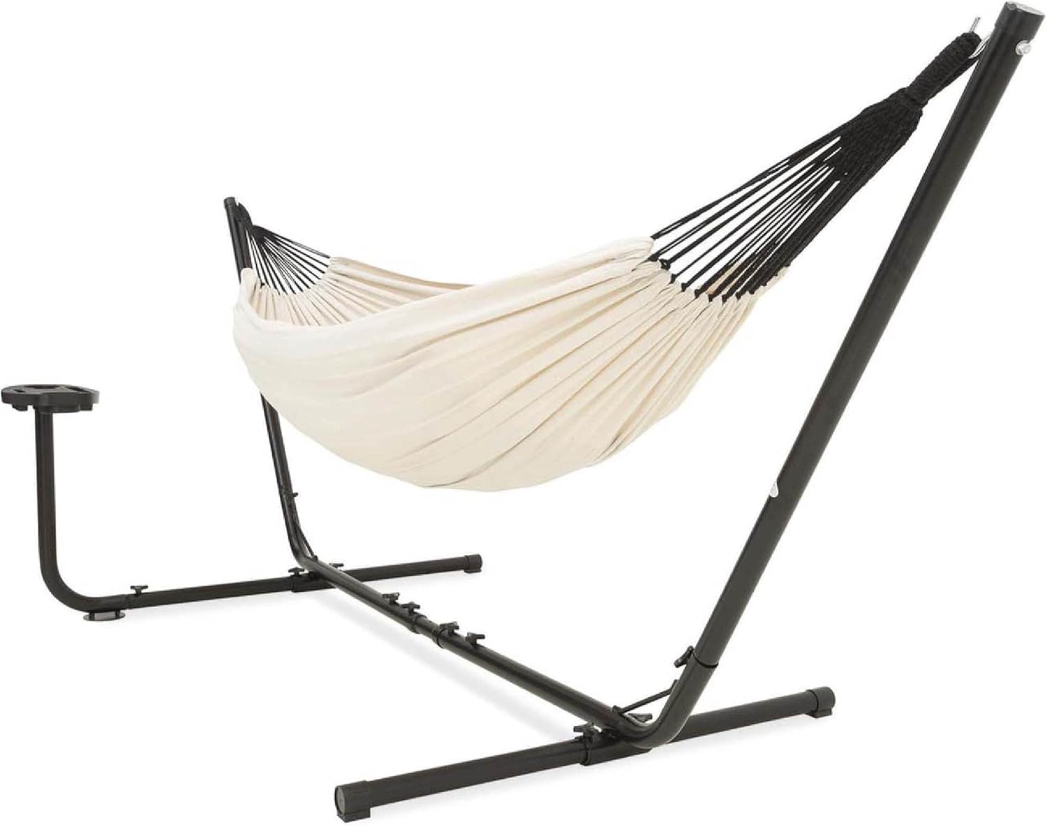 - AUSTRECKEN UND DURCHATMEN – Unsere Hängematte mit Gestell für 2 Personen ist bereit für den Sommer. Mit dem integrierten Getränkehalter bist Du perfekt ausgestattet und kannst Dich entspannen