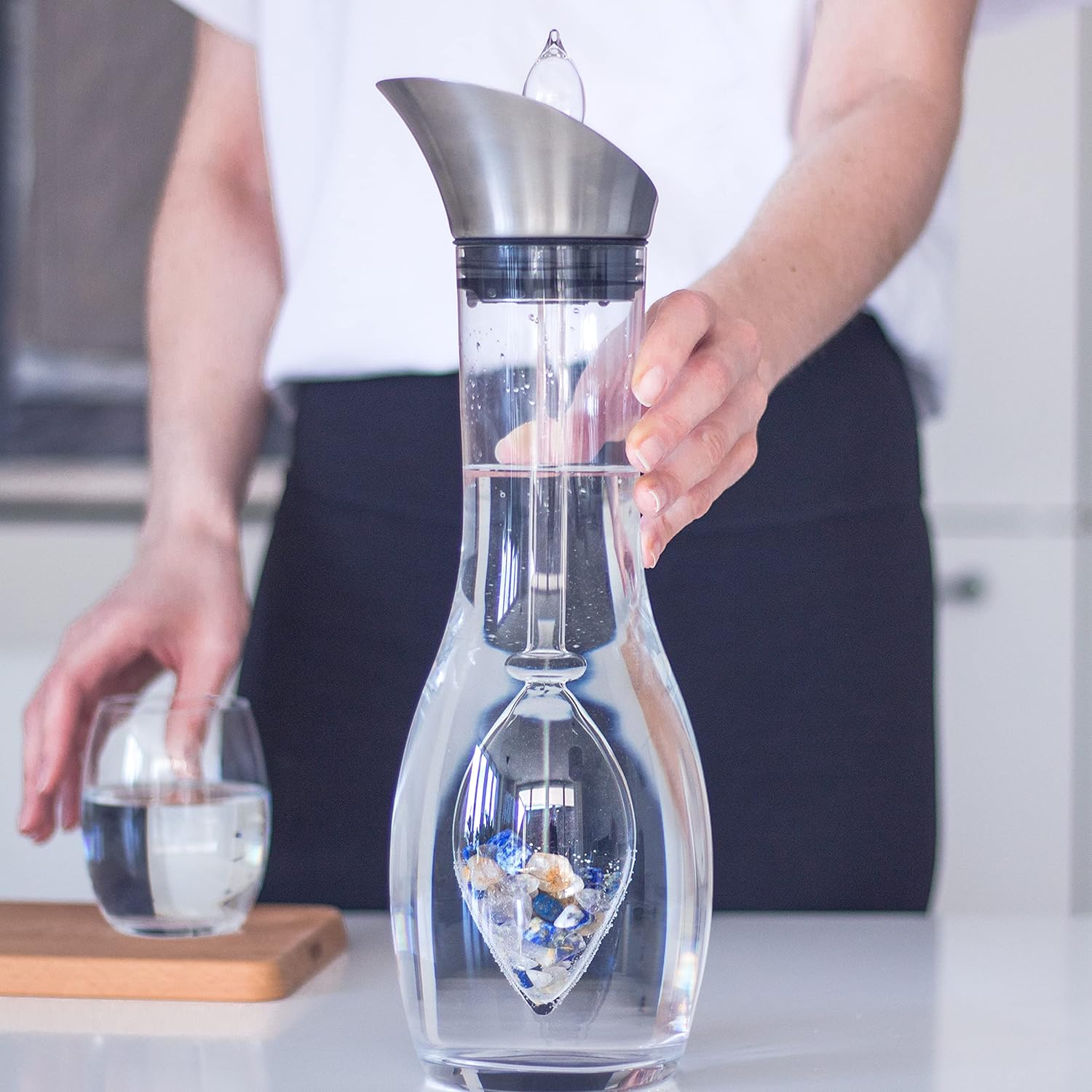 - Dieses Set besteht aus der VitaJuwel Karaffe ERA und der VitaJuwel Edelsteinphiole INSPIRATION. Veredeln Sie Ihr Trinkwasser mit dieser aussergewöhnlichen Karaffe und der mit handverlesenen Edelsteinen gefüllten Glasphiole.
