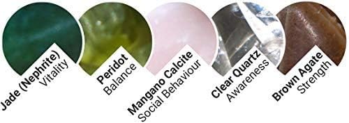 - Die CrownJuwel-Edelsteinmischung im Hundenapf besteht aus:+ Nephrit-Jade (Vitalität)+ brauner Achat (Stärke)+ Bergkristall (Aufmerksamkeit)+ Peridot (Ausgleich)+ Manganocalcit (Sozialverhalten)