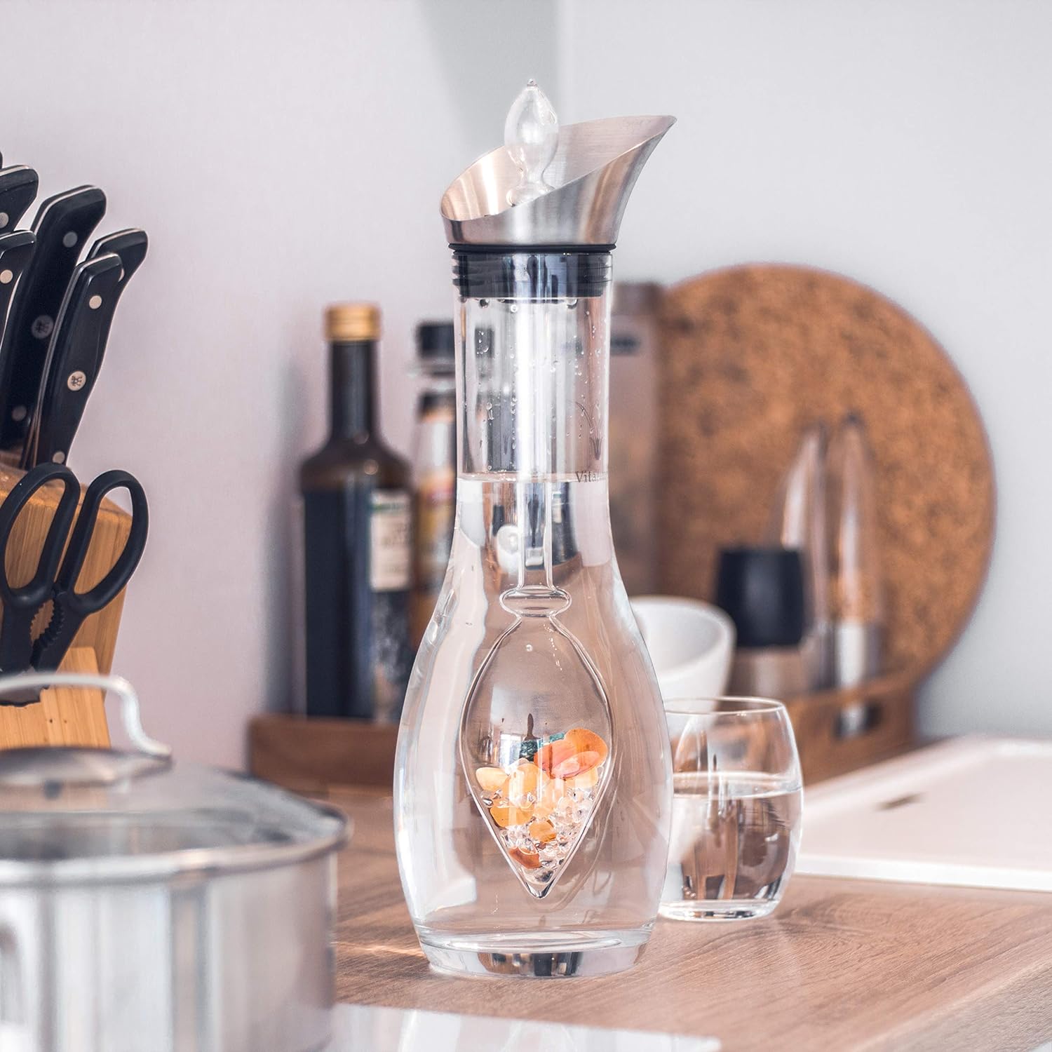 - Dieses Set besteht aus der VitaJuwel Karaffe ERA und der VitaJuwel Edelsteinphiole HAPPINESS. Veredeln Sie Ihr Trinkwasser mit dieser aussergewöhnlichen Karaffe und der mit handverlesenen Edelsteinen gefüllten Glasphiole.