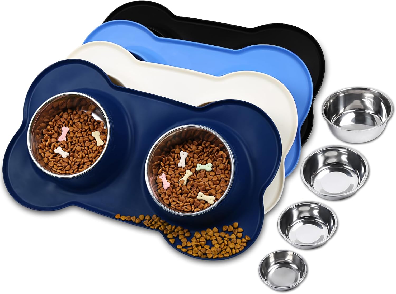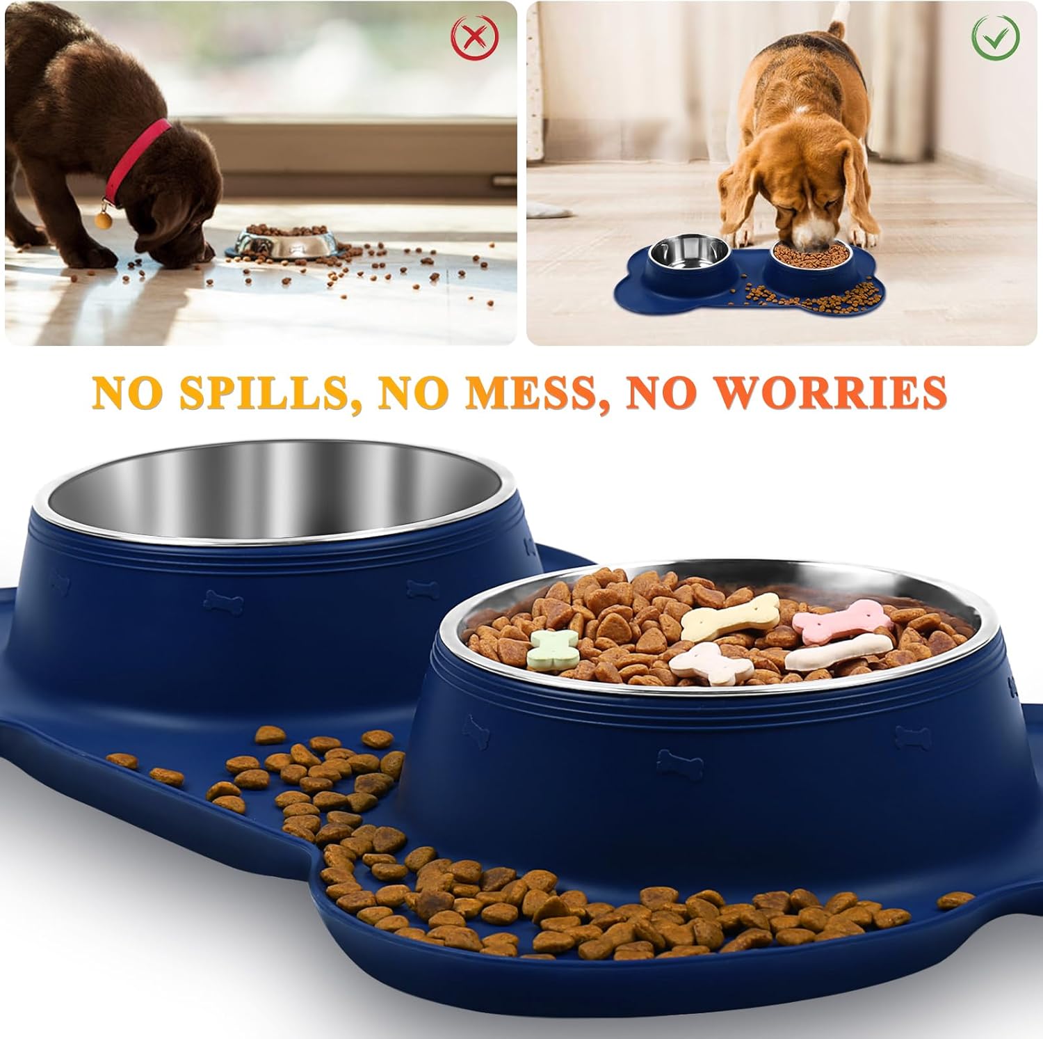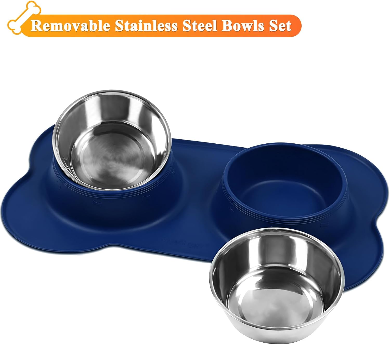 • Leicht zu reinigen und zu lagern: Zwei Hundenäpfe und eine Matte lassen sich zum Reinigen leicht trennen und sind spülmaschinenfest; Die flexible Silikonmatte ist zum Reisen und Aufbewahren faltbar