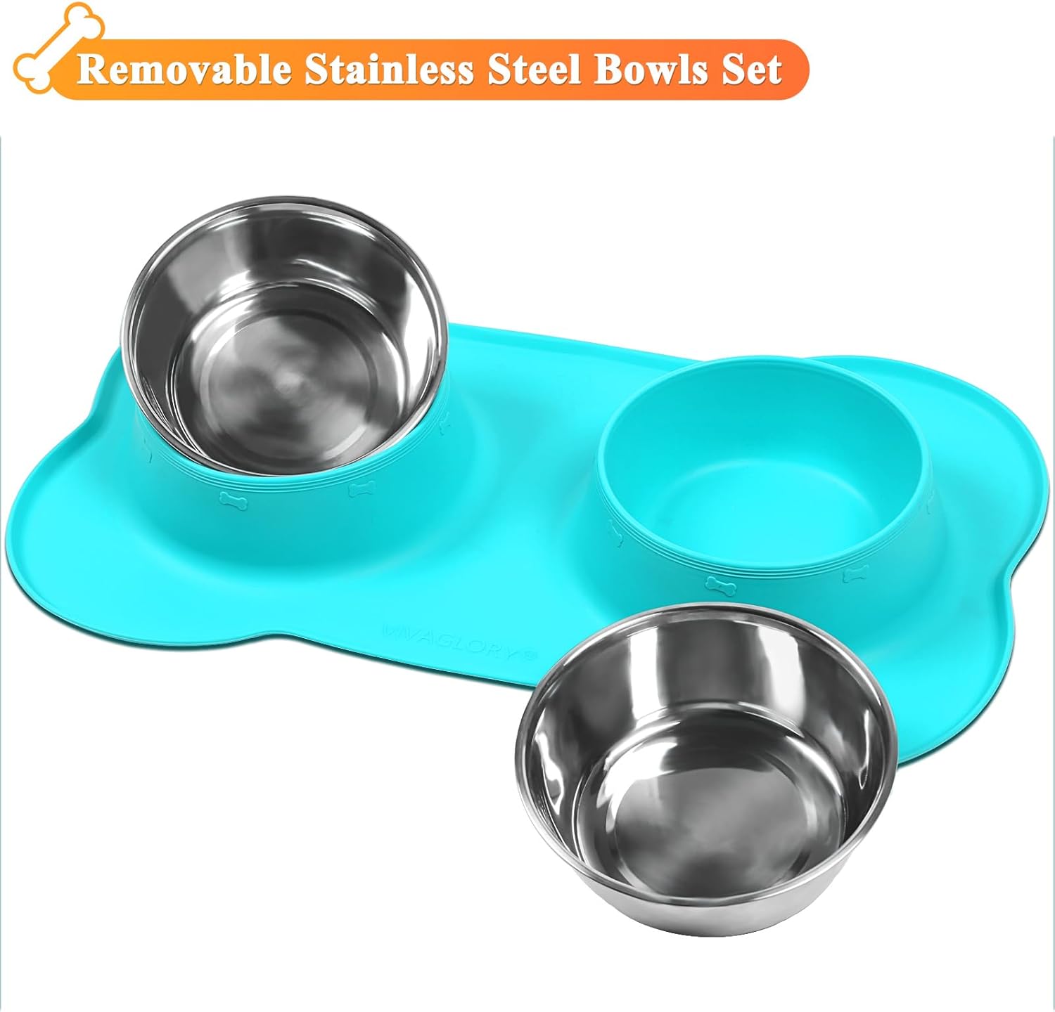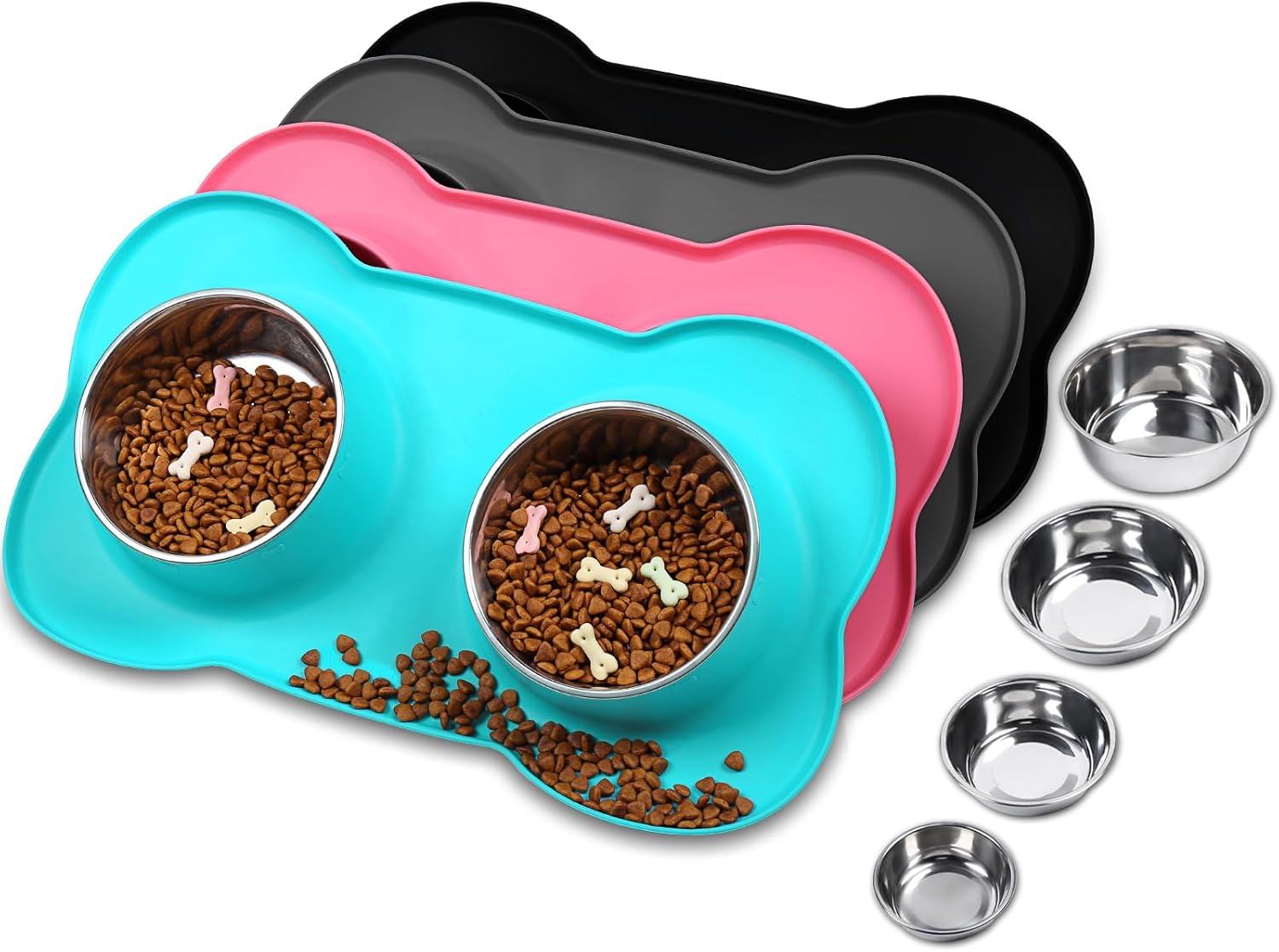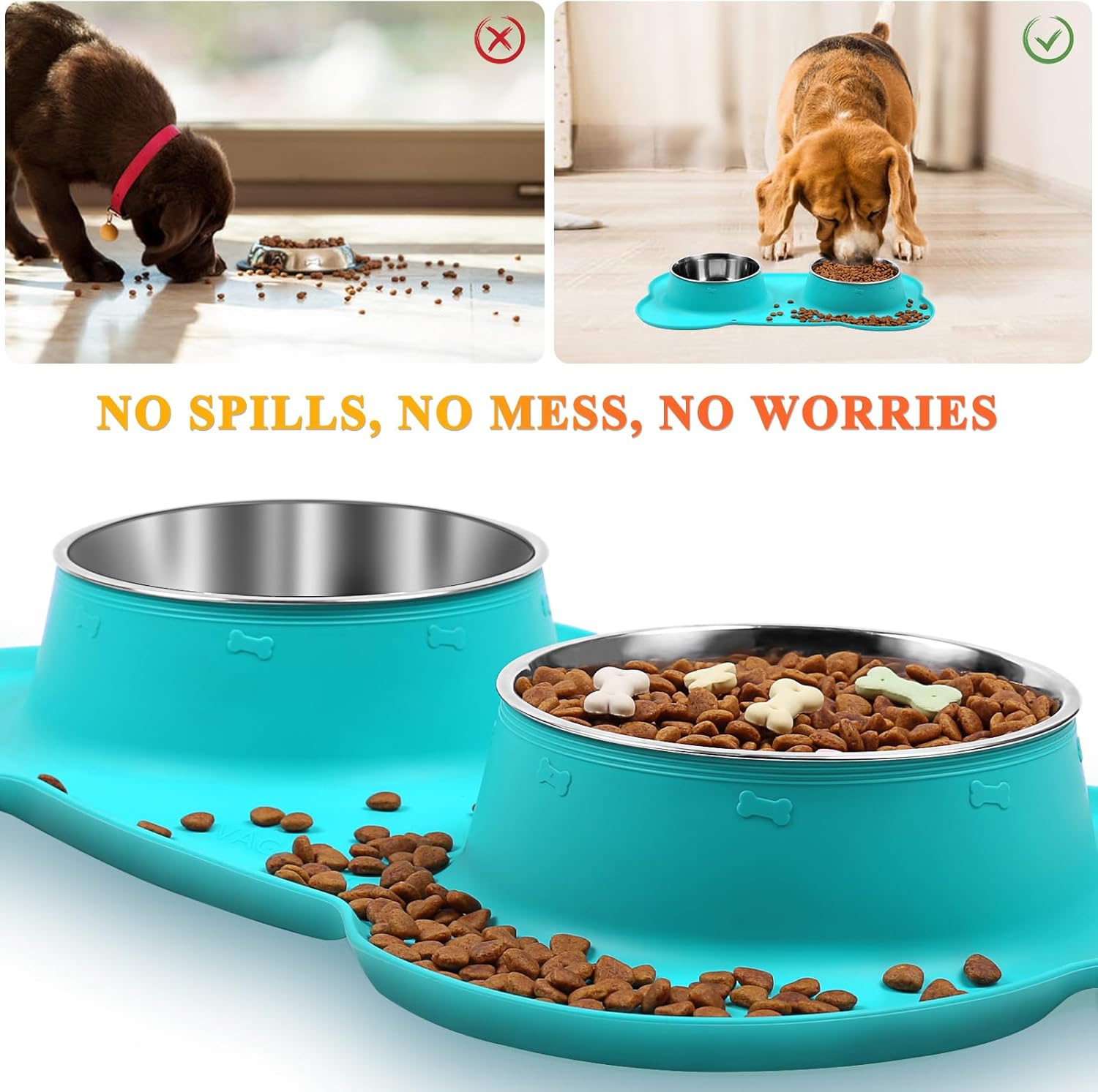 - Leicht zu reinigen und zu lagern: Zwei Hundenäpfe und eine Matte lassen sich zum Reinigen leicht trennen und sind spülmaschinenfest; Die flexible Silikonmatte ist zum Reisen und Aufbewahren faltbar