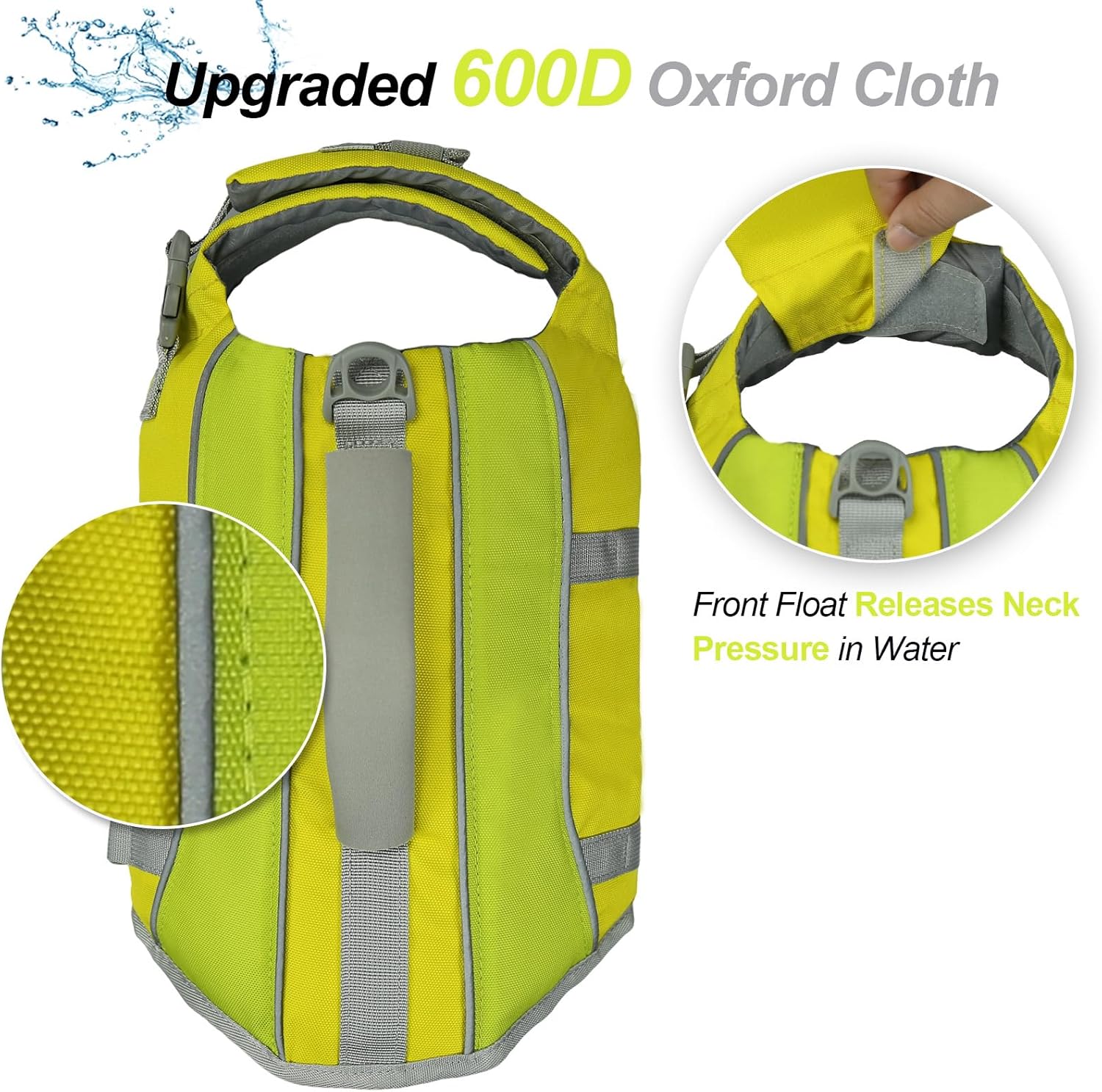 - Sicherheit: Mit reissfestem 600D-Stoff aufgerüstet, ist unsere patentierte Hundeschwimmweste langlebiger als normale. Mit zusätzlicher Polsterung ausgestattet, bietet sie bis zu 50 % mehr Auftrieb und hält Ihren Hund sicher im Wasser. Das