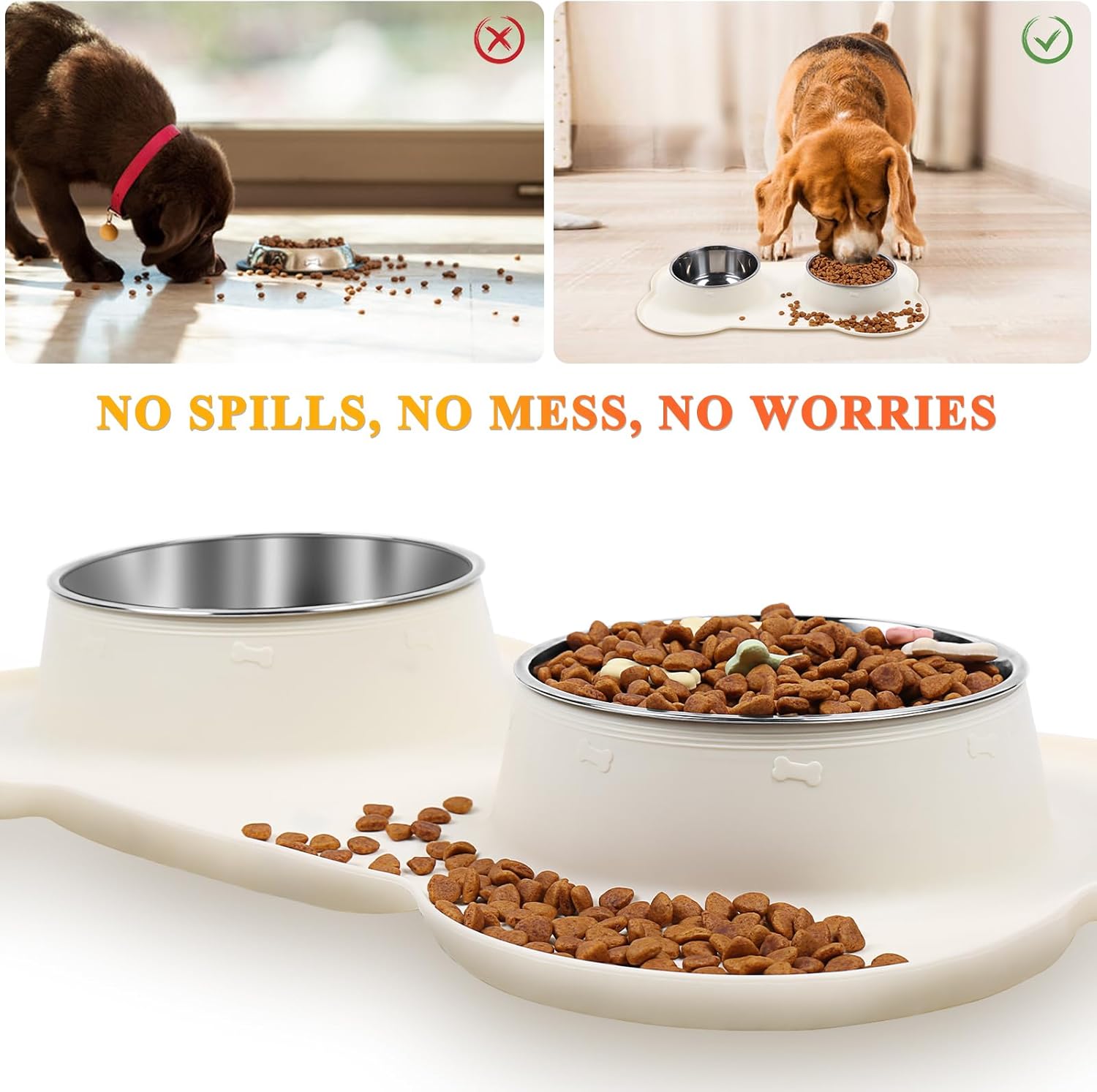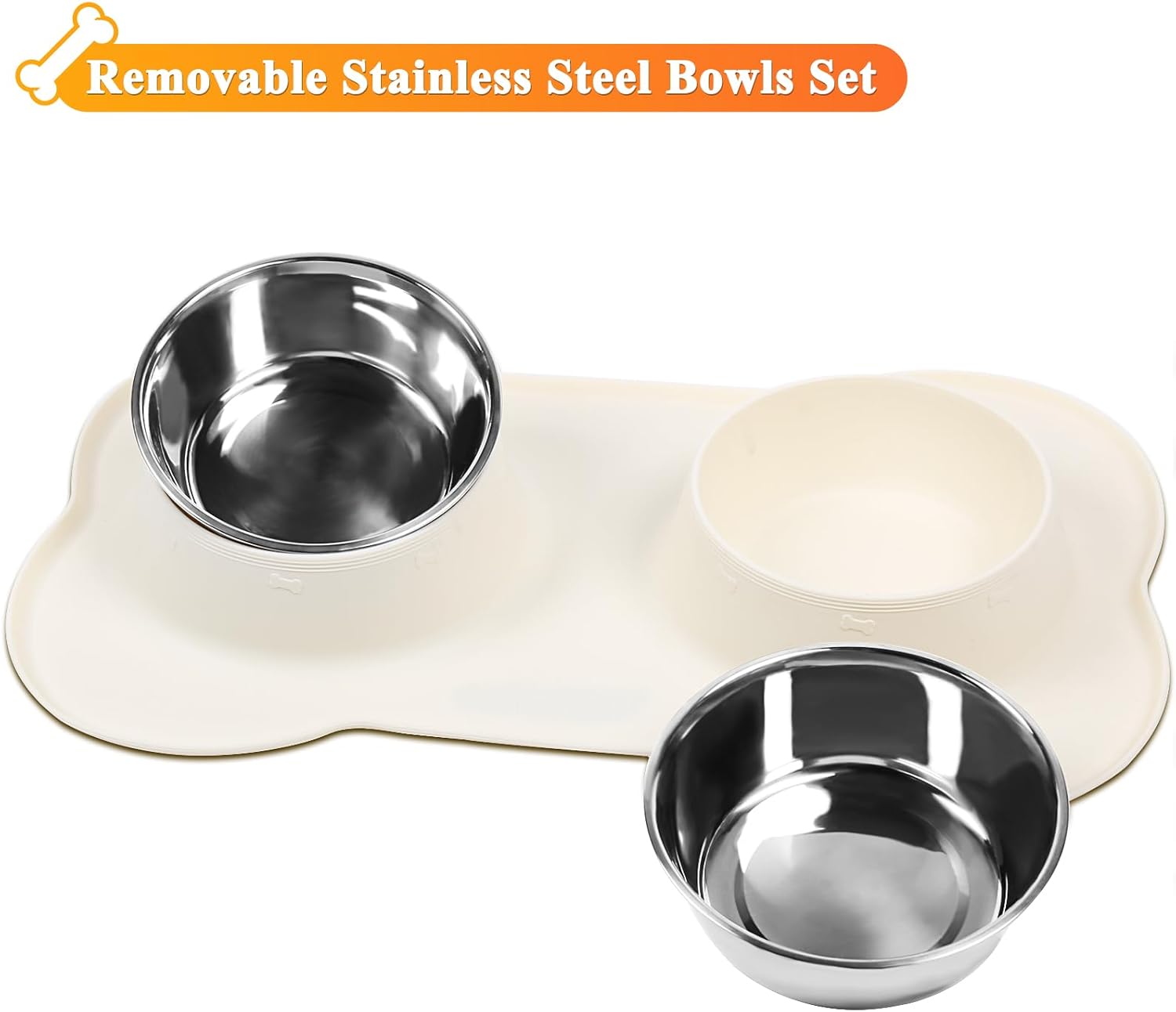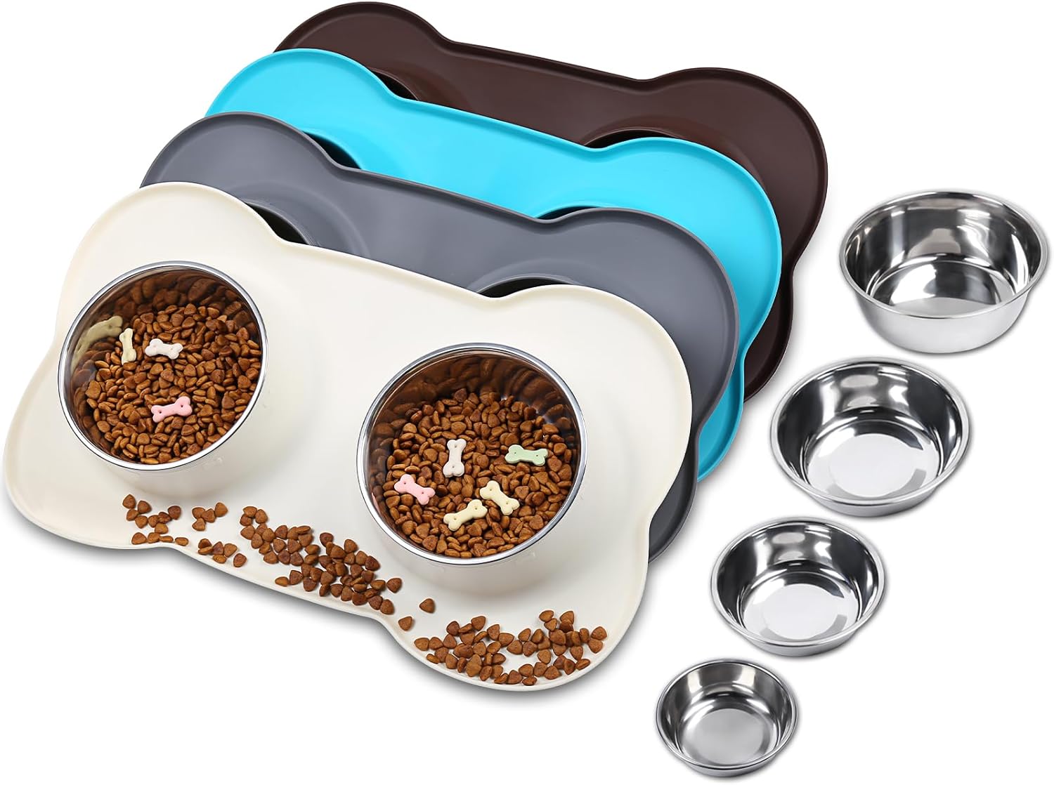 • Leicht zu reinigen und zu lagern: Zwei Hundenäpfe und eine Matte lassen sich zum Reinigen leicht trennen und sind spülmaschinenfest; Die flexible Silikonmatte ist zum Reisen und Aufbewahren faltbar