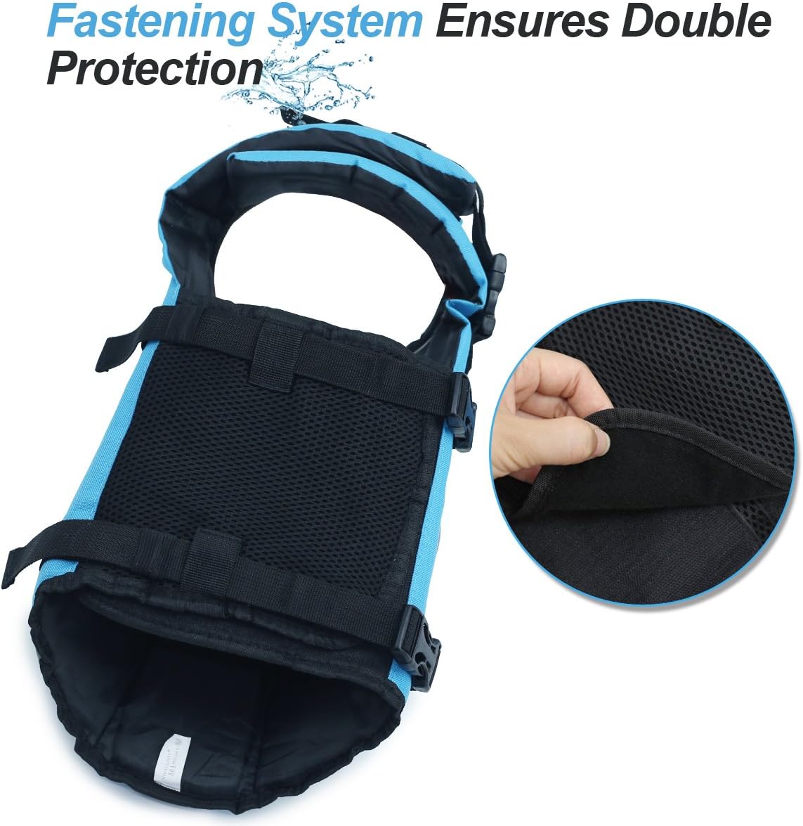 • KOMFORT UND PASSFORM: Robuste griff erleichtert das herausziehen Ihres hundes aus notfällen. D-Ring dient zur befestigung der hundeleine. Verstellbare träger und schnellverschlüsse sorgen für die perfekte passform und halten die jacke sicher am Hund