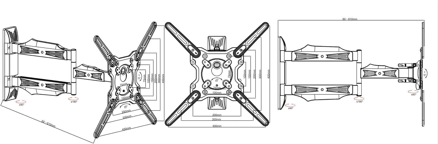 Vivanco 39500 BFMO 8140 TV-Wandhalterung 101,6cm (40) -139,7cm (55) Neigbar+Schwenkbar, Schwarz