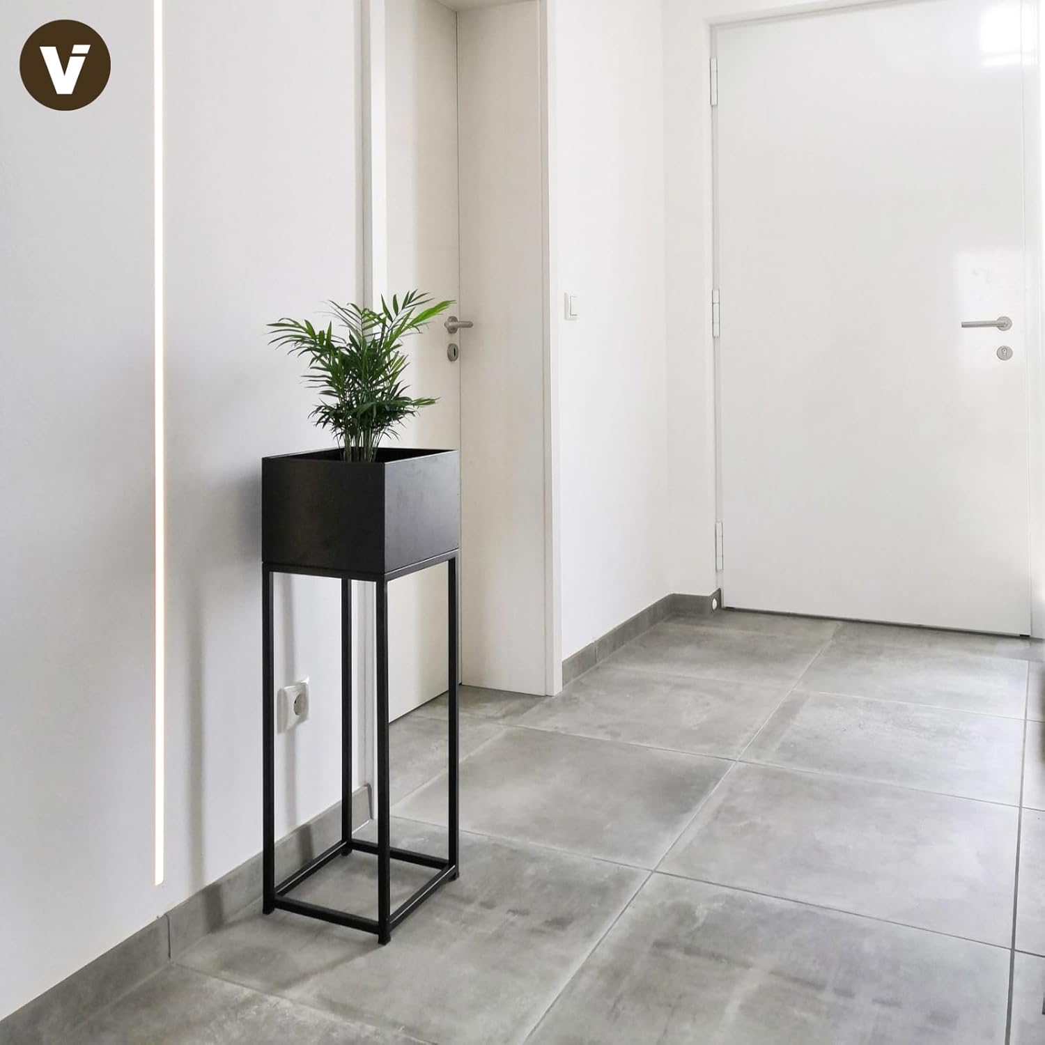 - Übertopf eckig auf einem Gestell in Schwarz RAL 9005