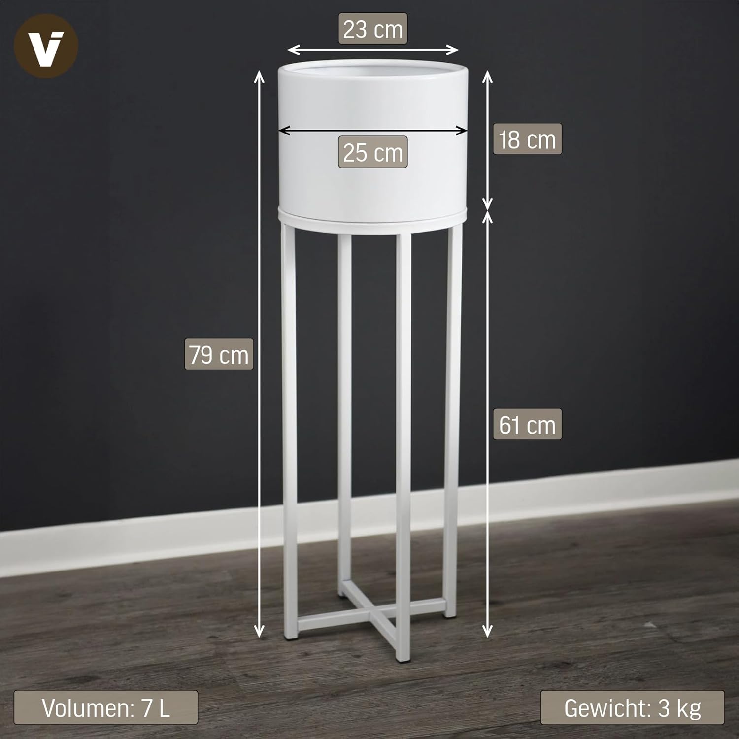 - Grösse (Höhe x Durchmesser, oben aussen): 79 x 25 cm - Höhe Ständer: 61 cm - Höhe Blumentopf: 18 cm - Innendurchmesser Blumentopf: 23 cm - Materialstärke Ständer: 2 cm