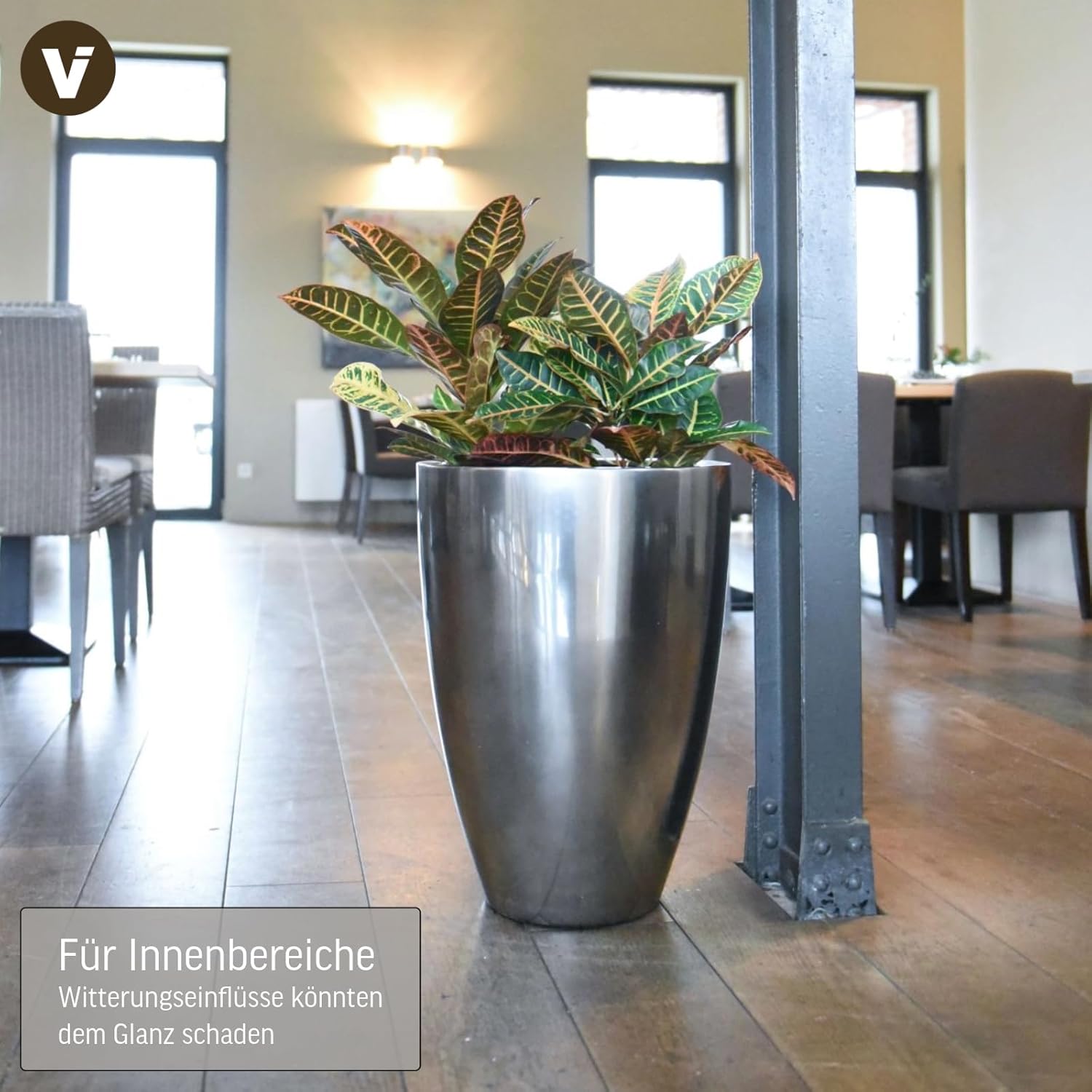 - Reflektierendes Edel-Design: Die metallische Silberoptik setzt Pflanzen eindrucksvoll in Szene und bietet jedem Raum einen Hauch von Luxus.