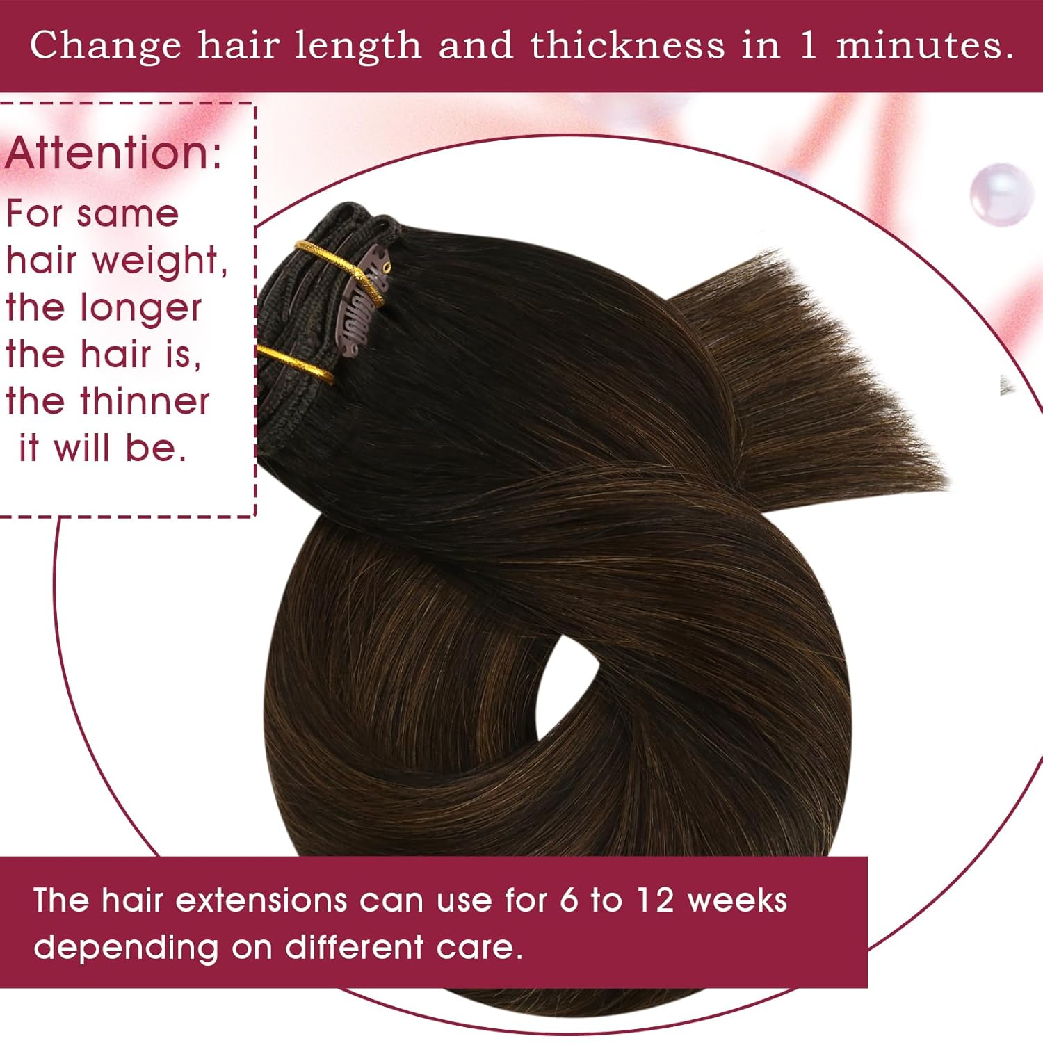 - 【Spezifikationen】Clip in Haarverlängerungen echtes menschliches Haar ist mit 7 verschiedenen Breite Stücke und insgesamt 16 Clips pro Packung. 12inch-70g-5P 14-22inch:120g-7P 24inch:135g-7P für Haarverlängerungen inklusive Clips.