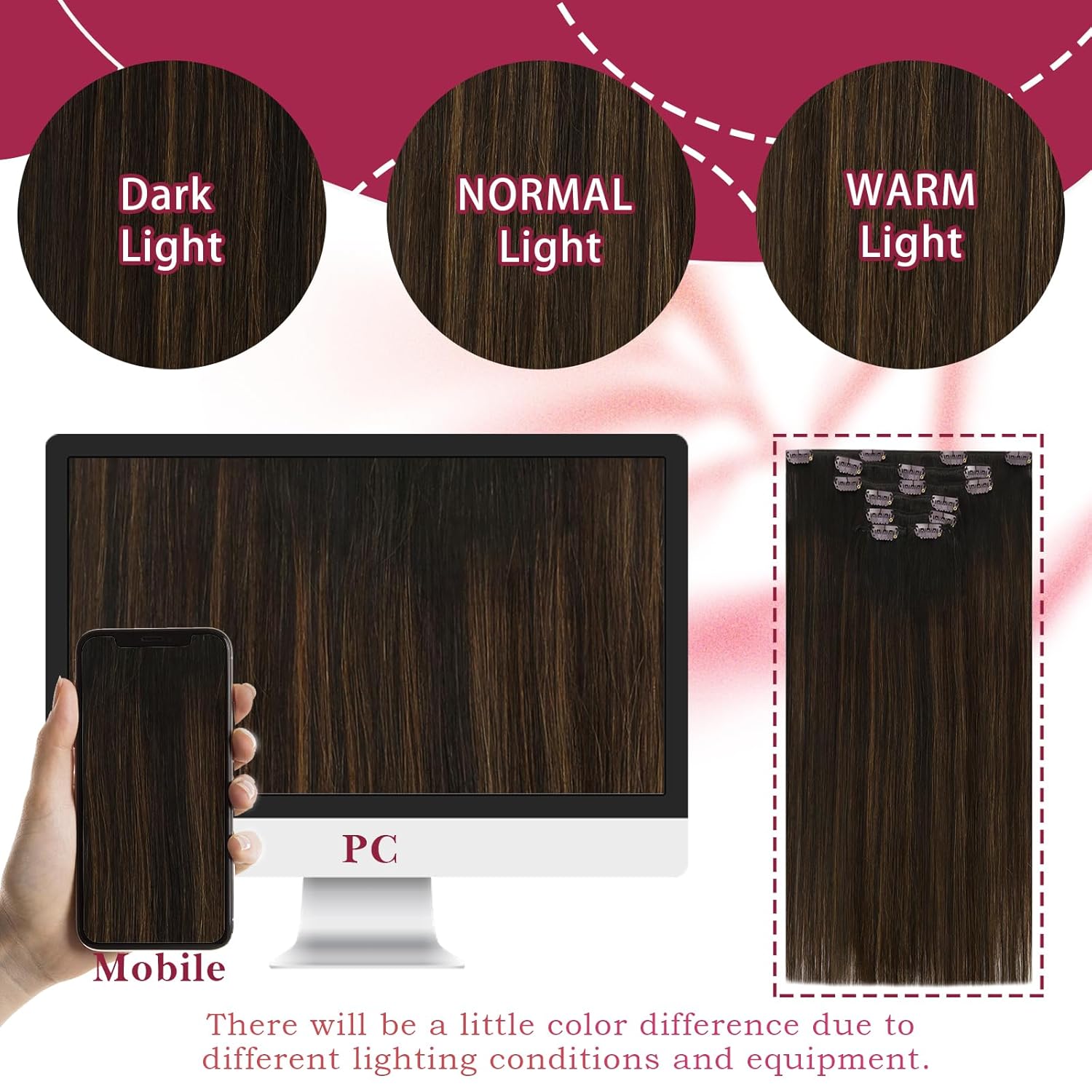 - 【Glänzende und modische Farbe】 Es gibt verschiedene Farben von Echthaar Clip in Extensions. Es kann einen leichten Farbunterschied zwischen den Bildern und dem Haar aufgrund unterschiedlicher Monitore geben.