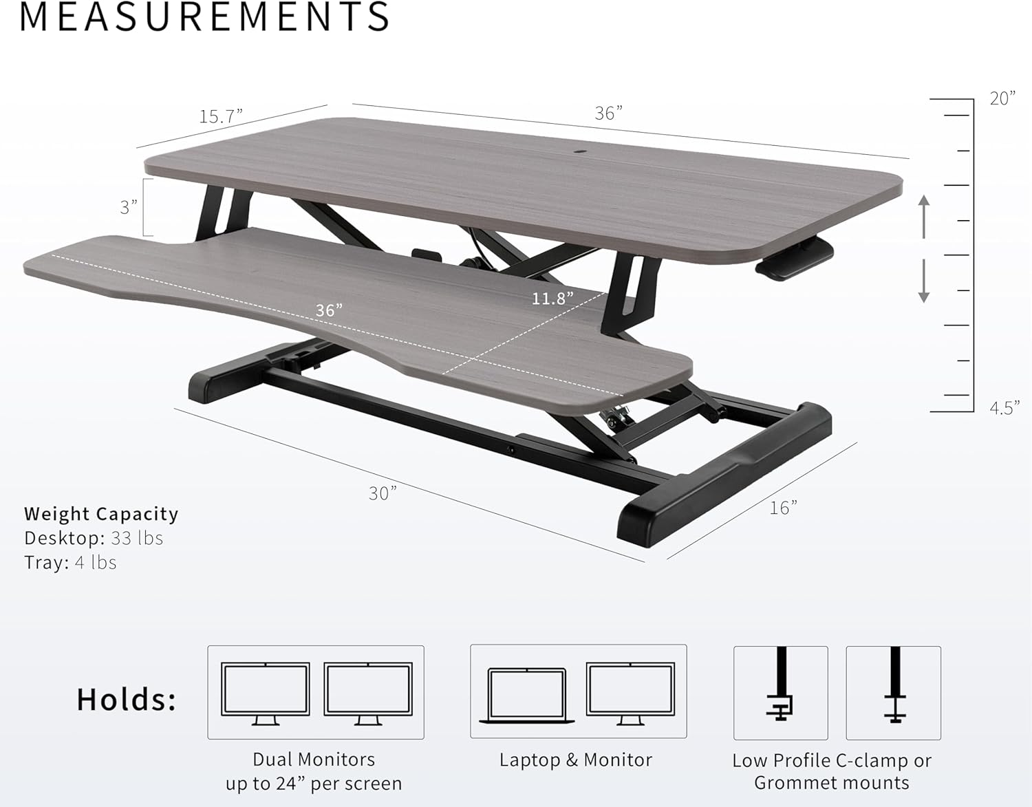 VIVO 91,4 cm (36 Zoll) Schreibtischkonverter, K-Serie, höhenverstellbare Sitz-zu-Steherhöhung, Dual-