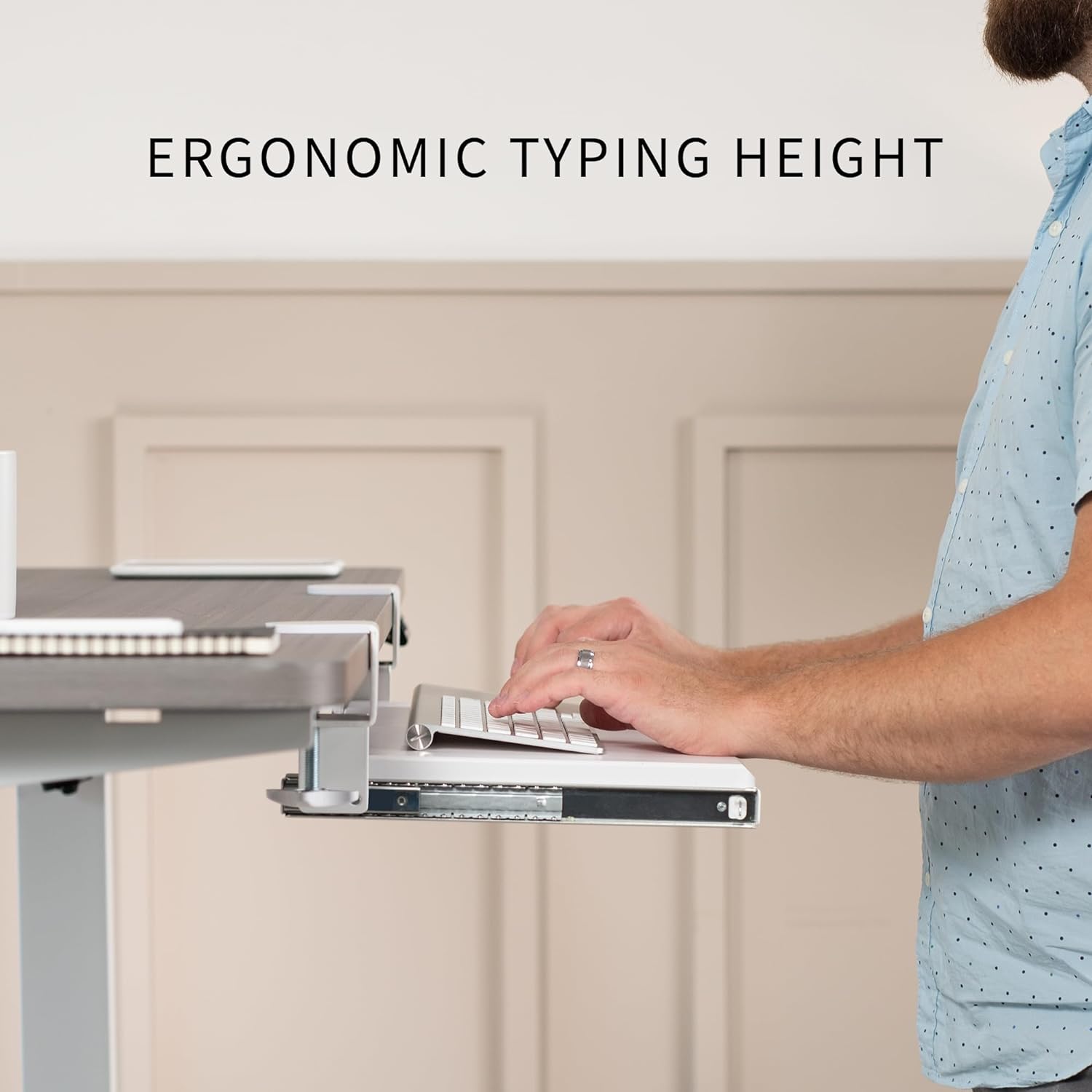 - Komfortable Tippwinkel – Schieben Sie das Tablett einfach hinein und heraus und geniessen Sie ergonomische Tippwinkel, die Ihre Handgelenke und Schultern entlasten. Das Tablett lässt sich maximal 21,6 cm vom Rand Ihres Schreibtisches ausziehen.