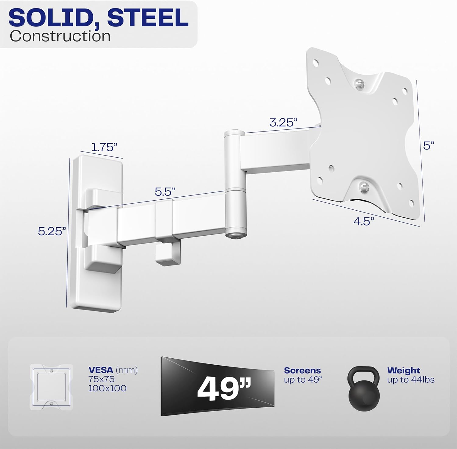 - Kompatibilität – TV- und Computermonitor-Wandhalterung passt auf Bildschirme von 13 Zoll bis 27 Zoll mit VESA 75 x 75 mm und 100 x 100 mm Befestigungsmuster. Stabile Stahlkonstruktion ist auf Festigkeit getestet, um Gewichte bis zu 20 kg zu tragen
