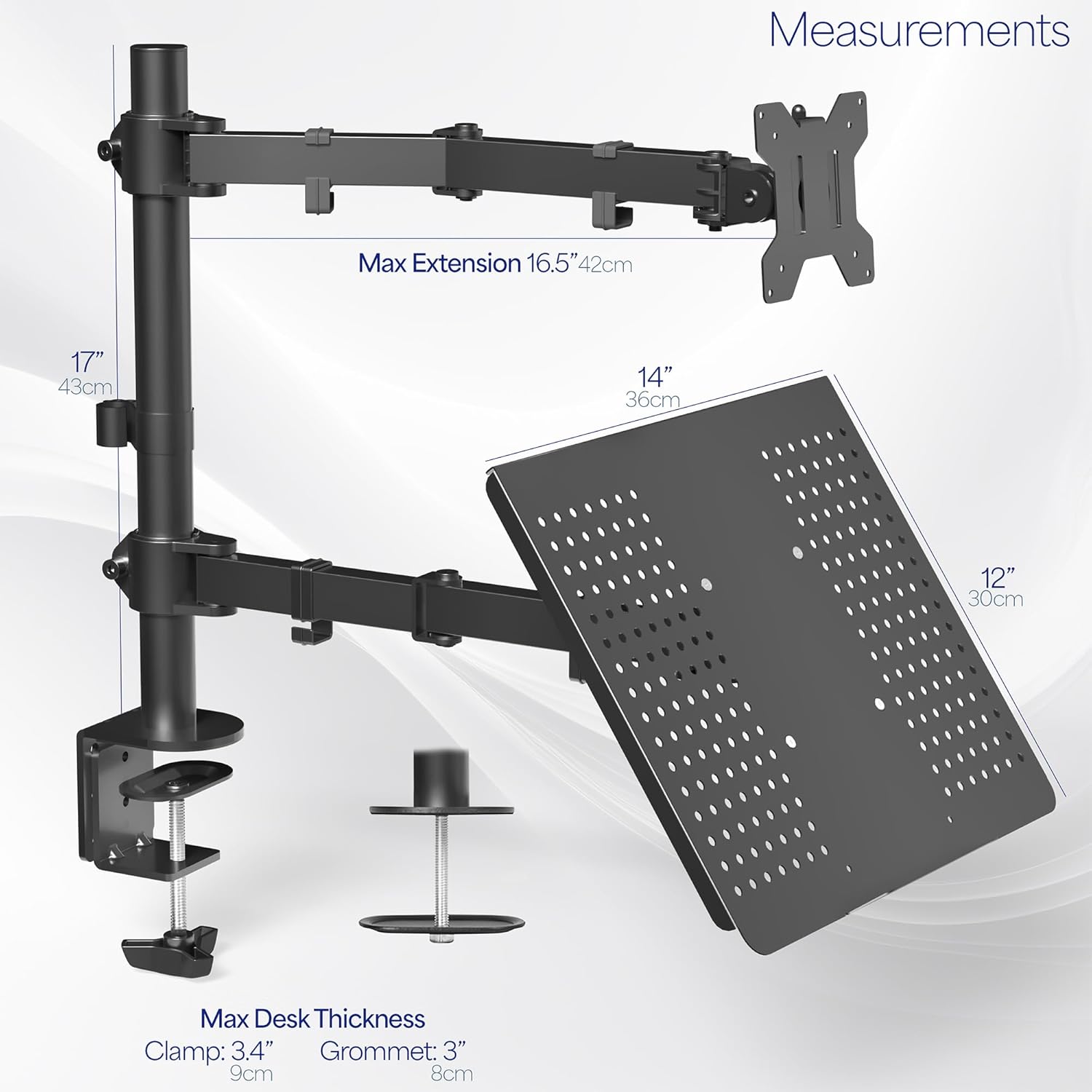 - Tischklemme "montiert auf die Rückseite Ihres Schreibtisches (bis zu 4 dick) über einen Heavy-Duty-c-clamp oder optional Tülle Halterung