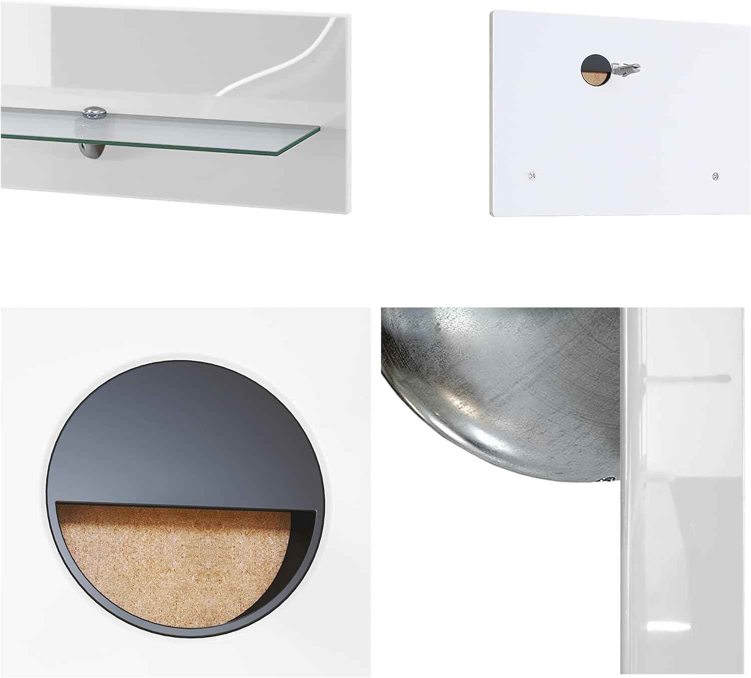 - Optik: Das Wandboard wirkt dank der eleganten Front und des Glasablage besonders modern und harmoniert durch das schlichte Design mit vielen weiteren Möbeln und Einrichtungsstilen.