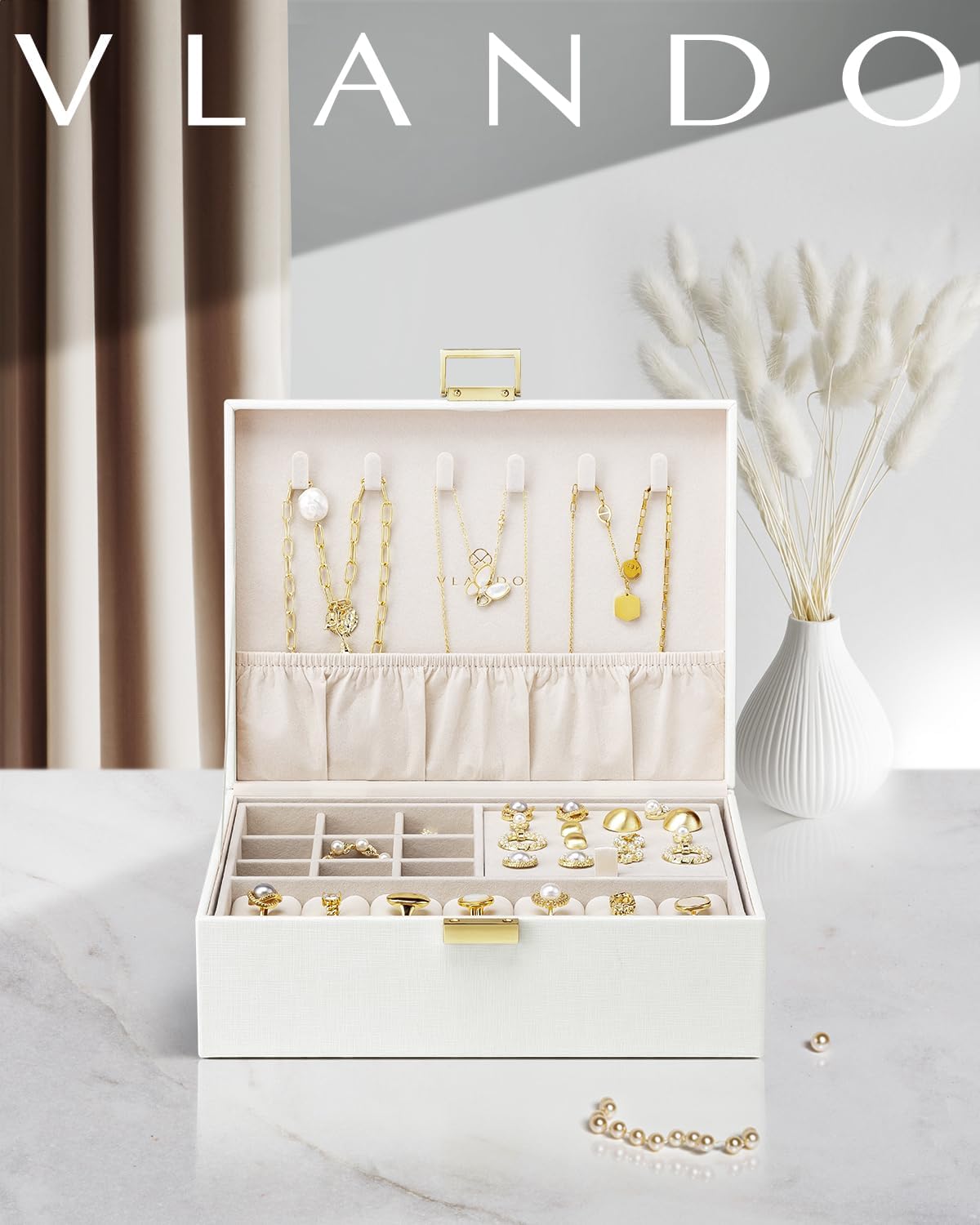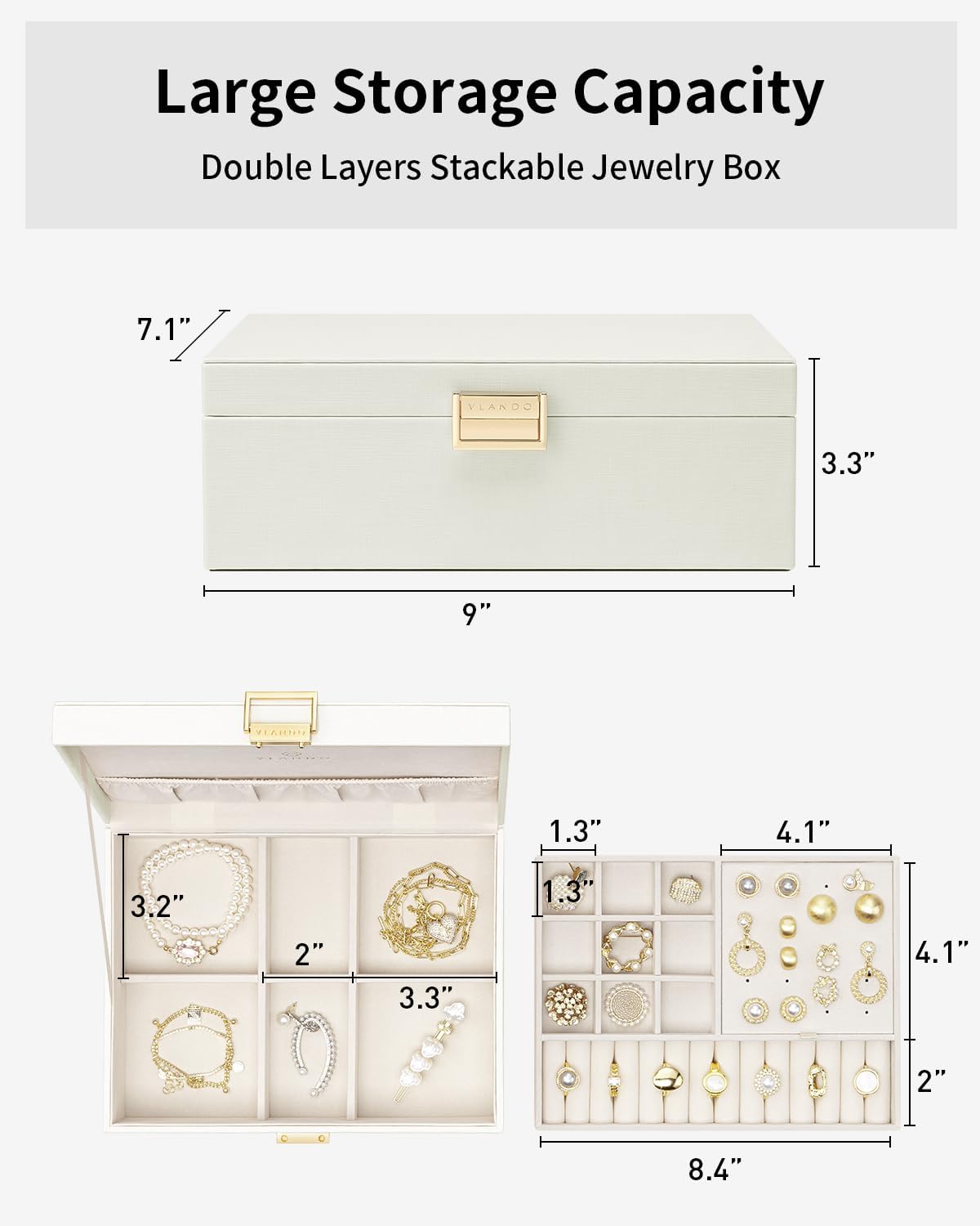 - Mehr Stauraum: Der Schmuck-Organizer ist 22,9 cm (Länge) x 18 cm (Breite) x 8,4 cm (Höhe), gross genug und nutzt jede Trennwand voll aus, um Ihre Armbänder, Halsketten, Ohrringe, Haarnadeln, Uhren und anderes Schmuckzubehör aufzubewahren.