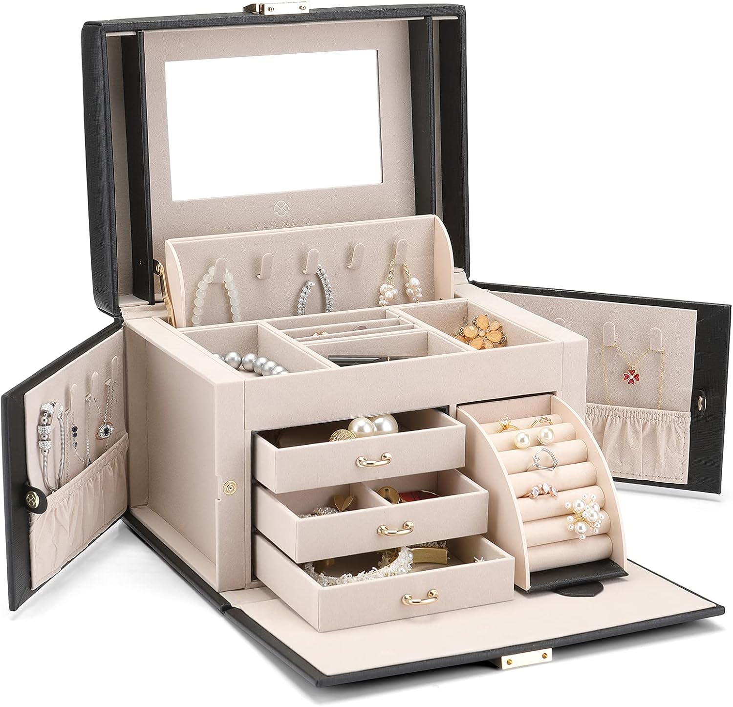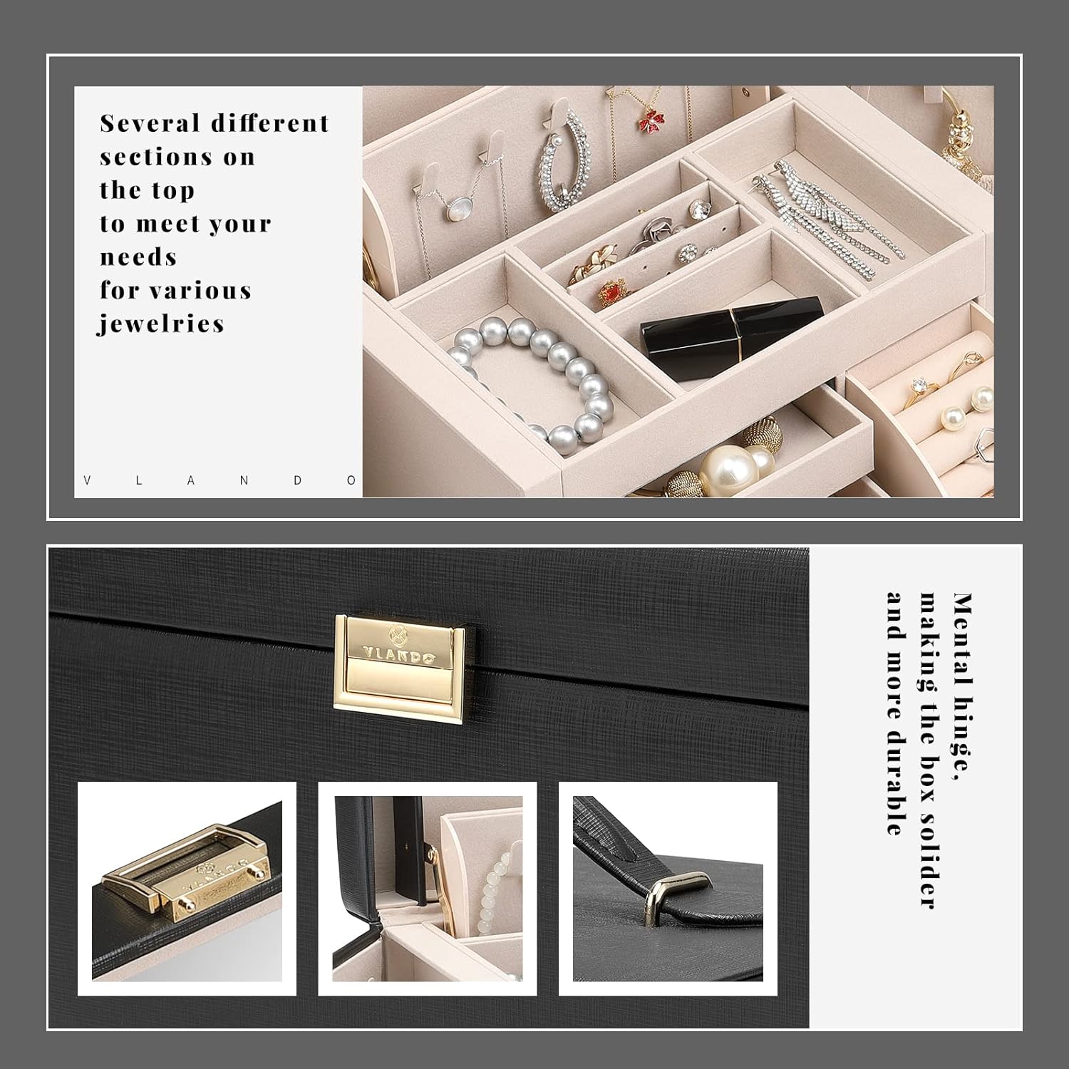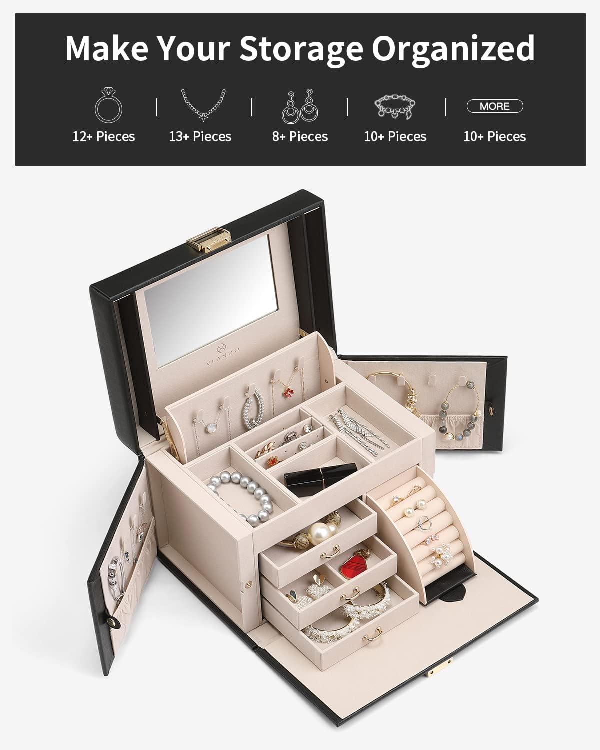 - 💋【Eingebauter Schminkspiegel】 In der Schmuckbox gibt es einen harten und klaren Schminkspiegel, damit Sie bei dem Tragen Ihre Lieblingsschmuck schneller Ihre Schönheit sehen können.