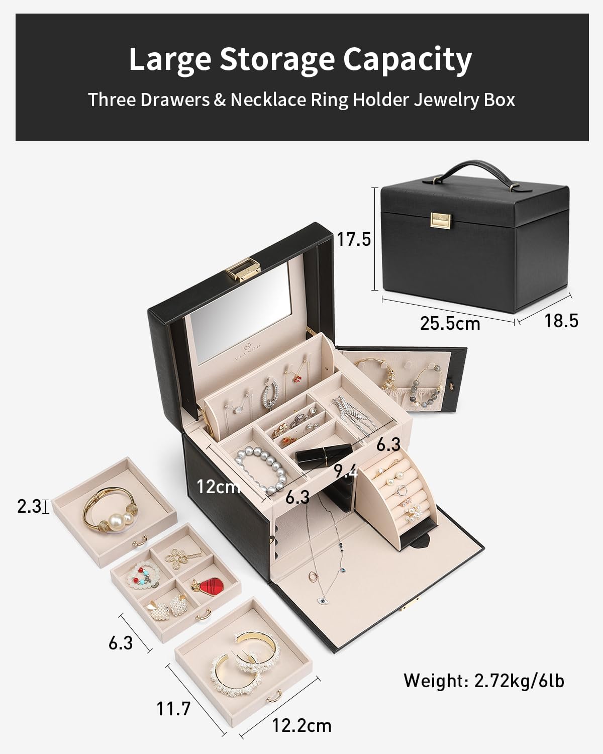 - 👑【Barockstil Schmuckkästchen】Beim Zumachen erhielt das Schmuckkasten eine schlichte Fassade, glänzendes Metallverschluss und sicheren Griff. Während Öffnung wird die Schmuckschatuelle einen attraktiven Palast. Besondere originelle Automatische