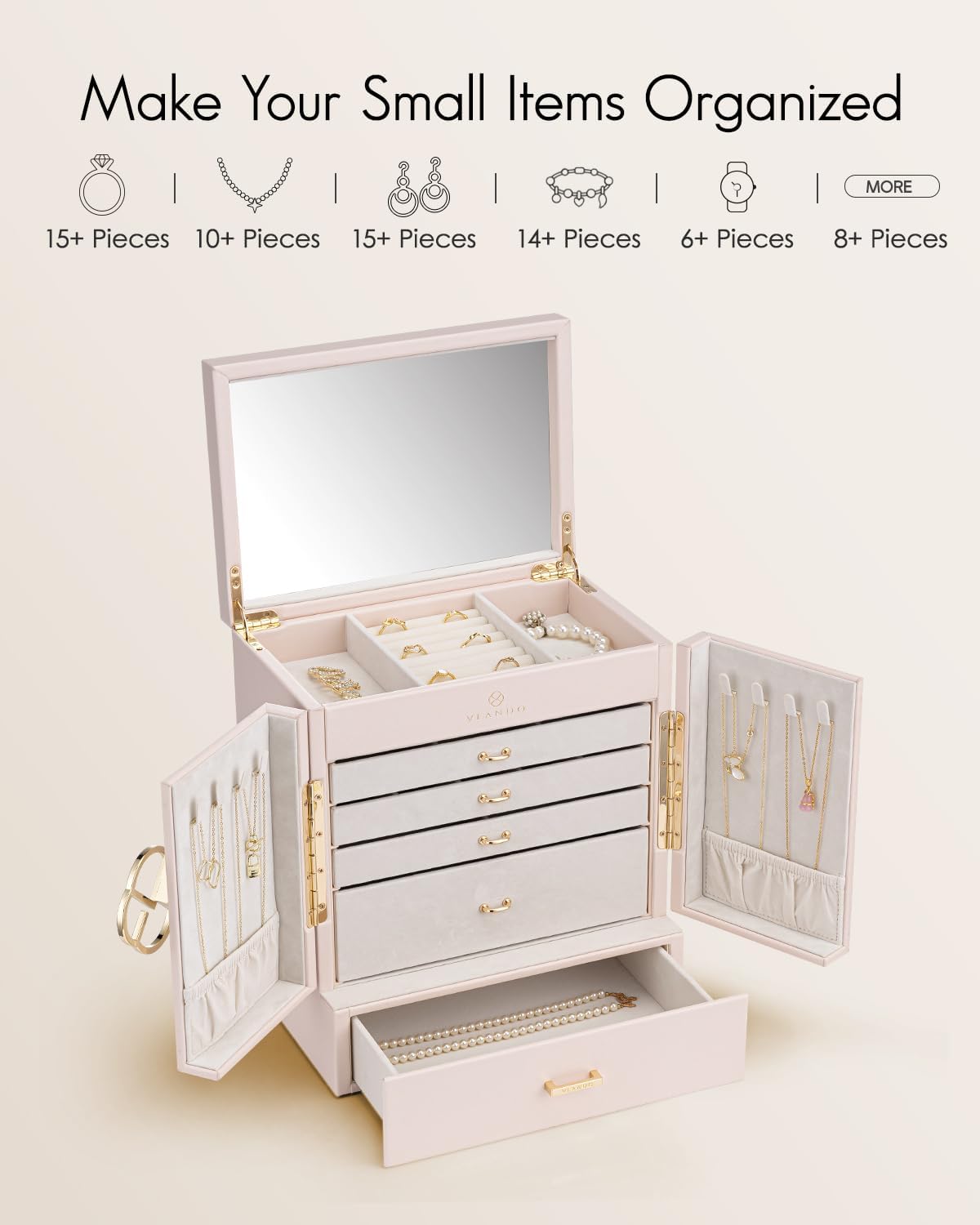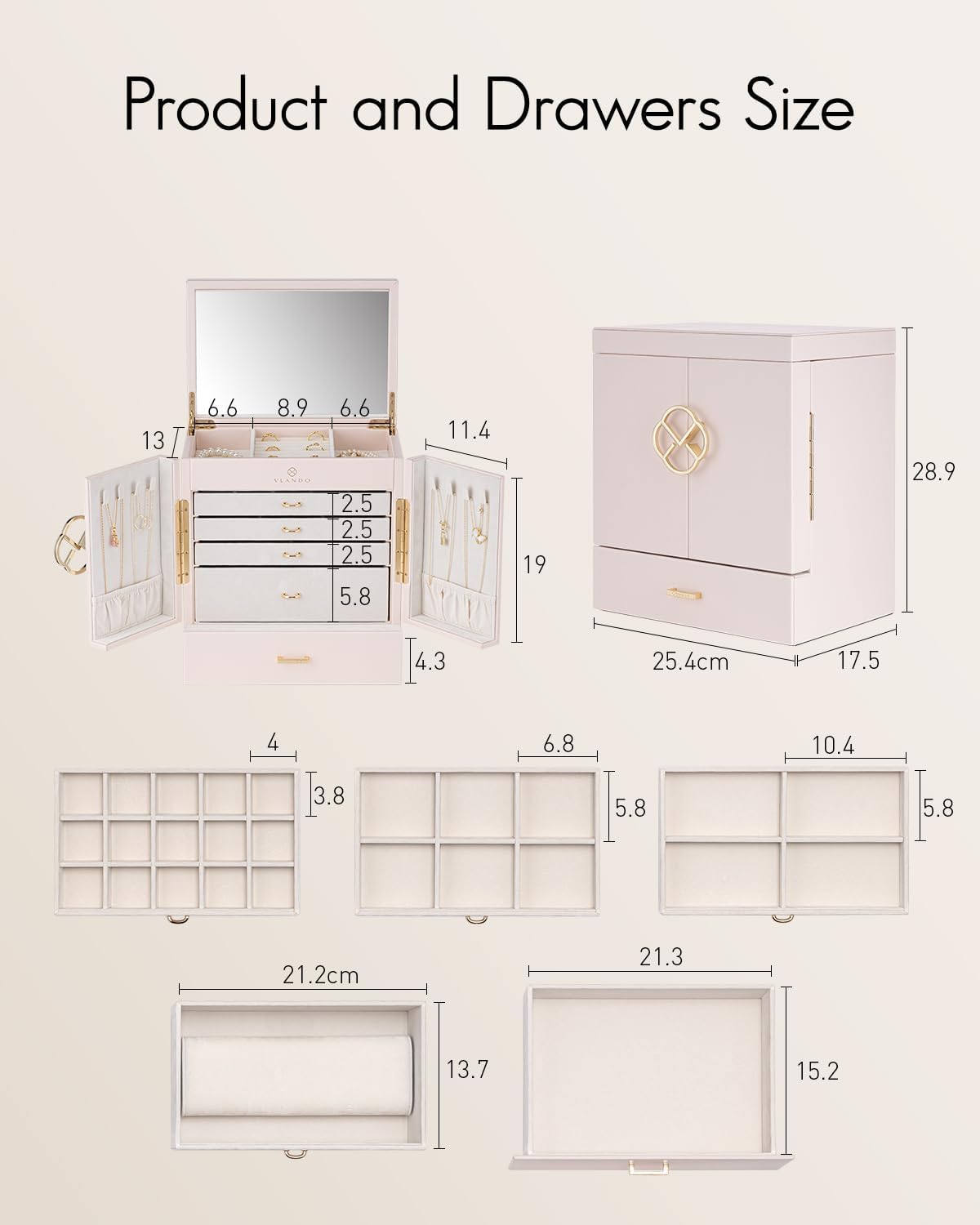 - 🌹Premium-Kollektion für Frauen: Geniessen Sie die Schmuckaufbewahrung täglich durch die Verwendung von diesem VLANDO schönen Schmuckschrank, deren Design von beeindruckenden Architektur und Antike inspiriert ist.