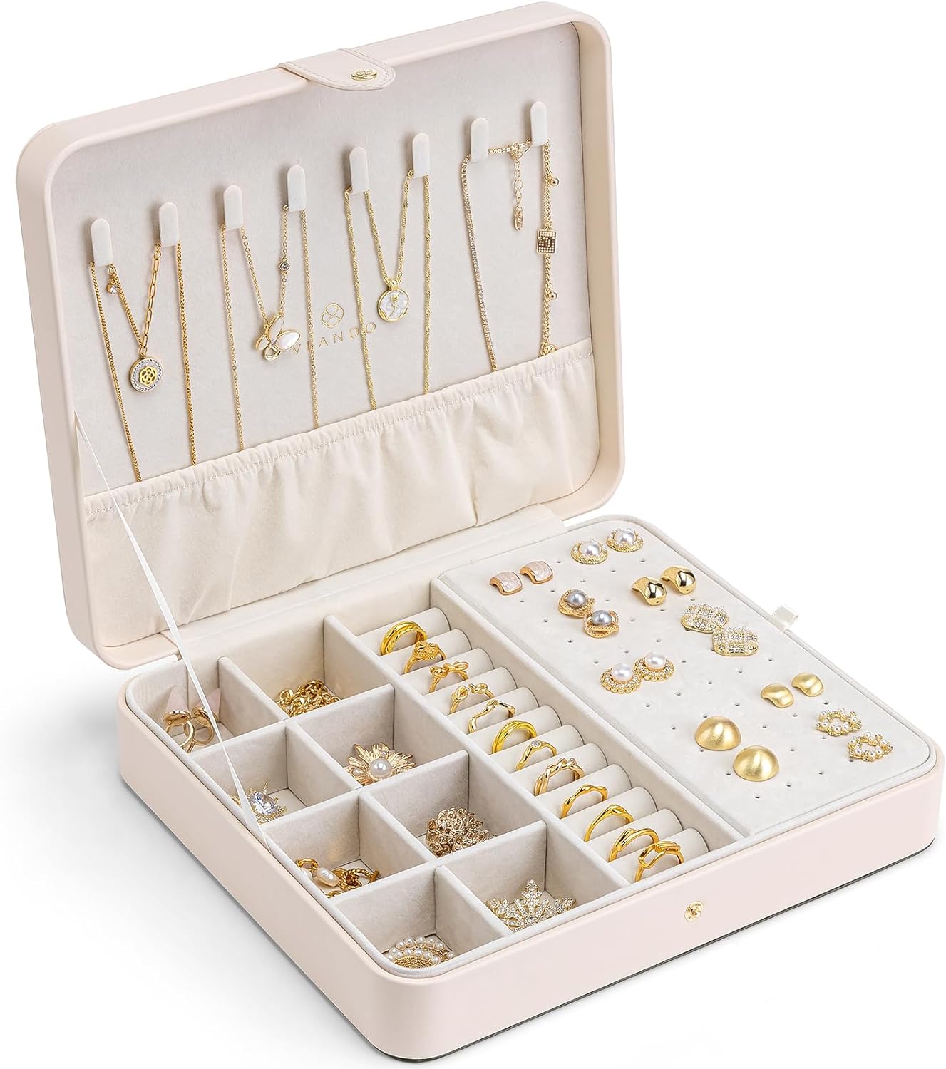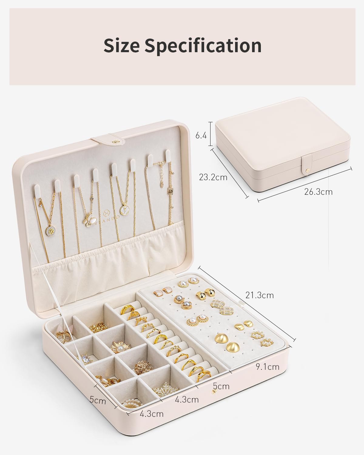 - 🌿【Kunstvolles und Flaches Design】Die Höhe beträgt nur 7 cm, was bequem in Schubladen, Kleiderschränken, Schminktischen und sogar auf Reisen verstaut werden kann; wenn Sie die Schmuckschatulle öffnen, ist Ihr gesamter Schmuck auf einen Blick