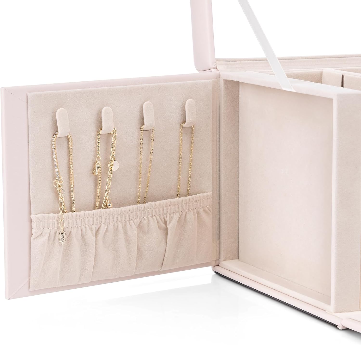 Vlando Schmuckkasten Schmuckbox mit 4 Ebenen, Schmuckschatulle PU Leder, Schmuckbox mit Spiegel und