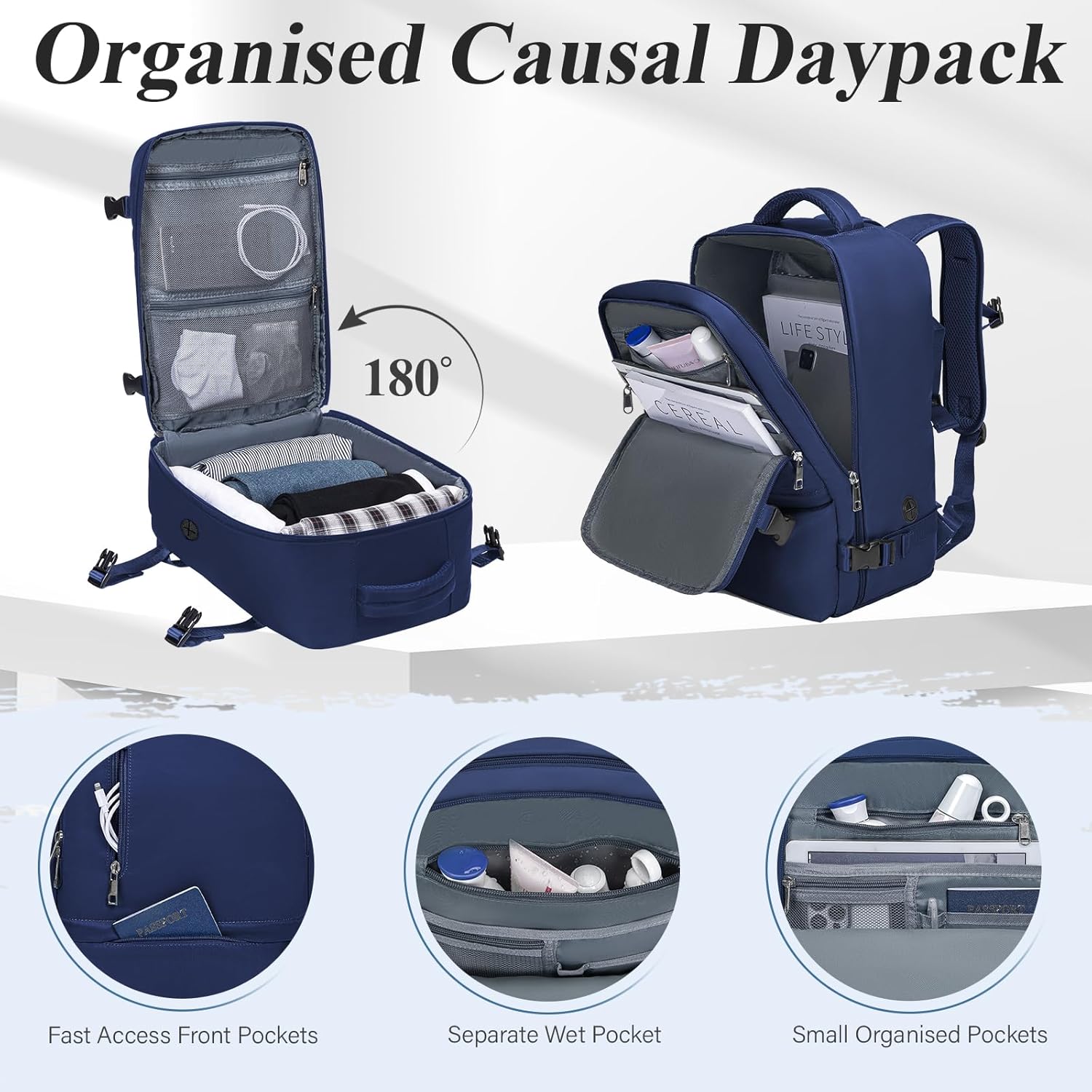 - ORGANISIERTER KABINENRUCKSACK: Getrennte Taschen für verschiedene Dinge. 1 x Hauptfach mit 180°-Öffnung; 1 x Nassfach für ein nasses Handtuch; 1 x Laptop-Fach; 2 x Fronttaschen mit Reissverschluss; 3 x Innentaschen; 1 x Anti-Diebstahl-Tasche auf der