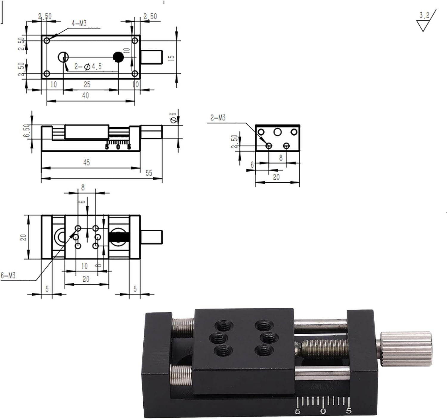 - Die Getriebedrehgriffsteuerung mit Schwalbenschwanzführung sorgt dafür, dass der X-Achsen-Lineartisch eine hohe Präzision, Laufruhe und reibungslose Bewegung aufweist, was ein gutes Zubehör ist, das 1 kgf tragen kann