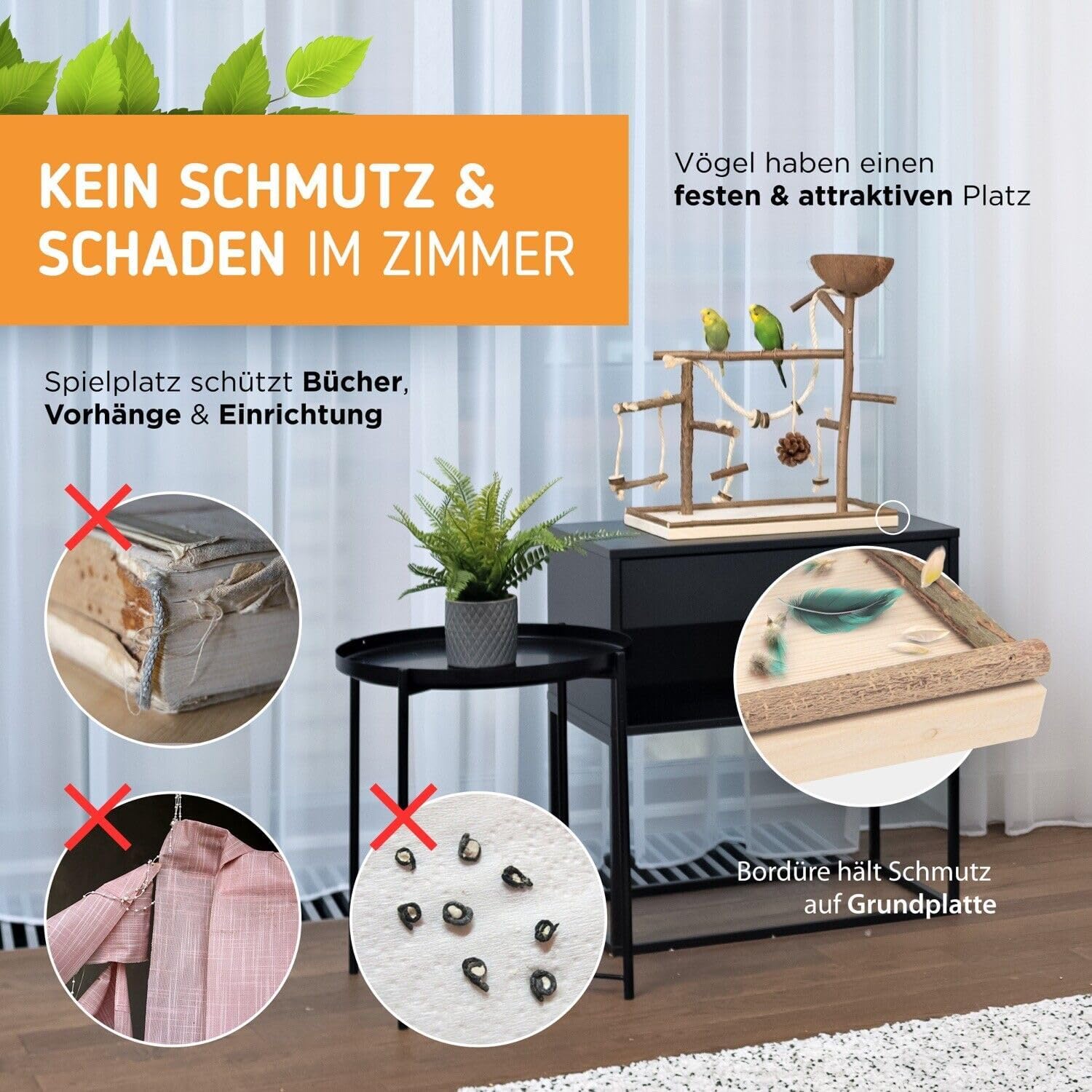 - Ermöglichen Sie Ihren Vögel soviel Freiflug wie möglich --> Ein Freisitz sorgt dafür, dass der Vogel Ihre Wohnzimmereinrichtung in Ruhe lässt