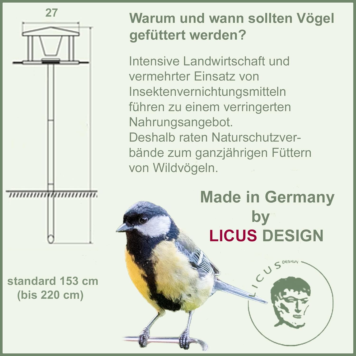 - STABILER STAND der Vogelfutterstation; Massives Edelstahlrohr für festen Halt im Boden auch bei starkem Wind und Schnee