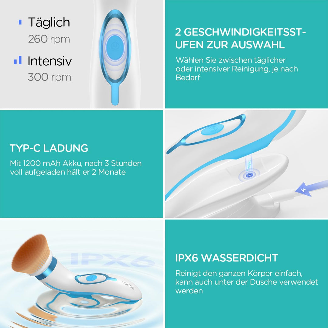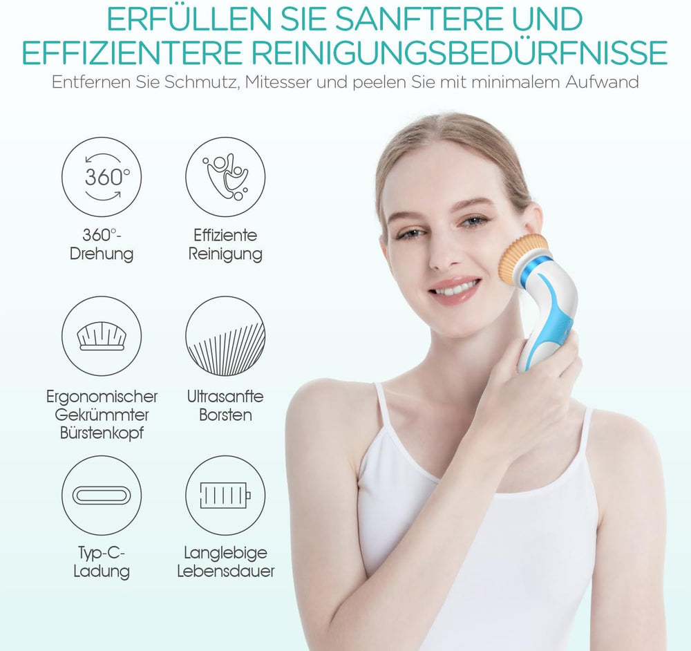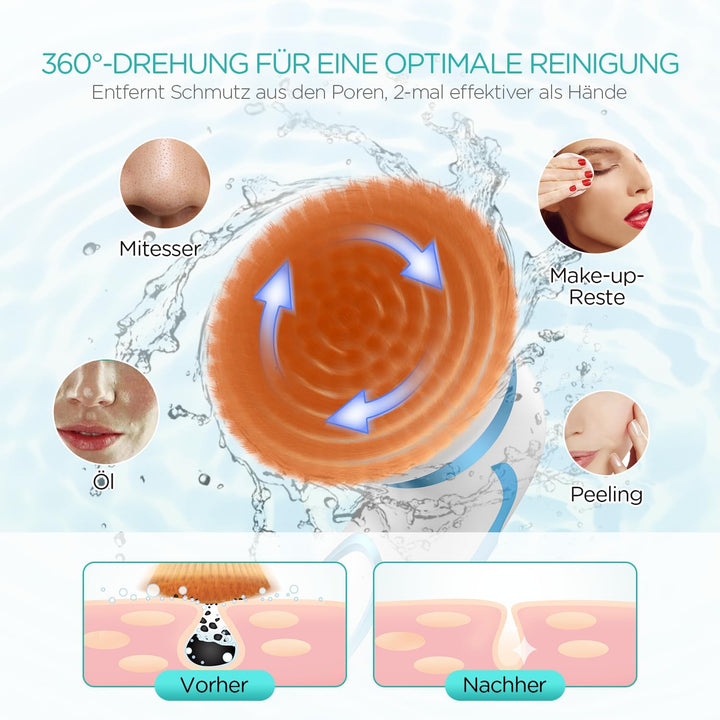 - Zweistufige 360°-Rotation – Die leistungsstarke rotierende reinigungsbürste gesicht elektrisch mit ultraweichen Borsten ermöglicht eine sanfte und gründliche Entfernung von Schmutz, Öl, Mitessern und Make-up-Rückständen - doppelt so effektiv wie