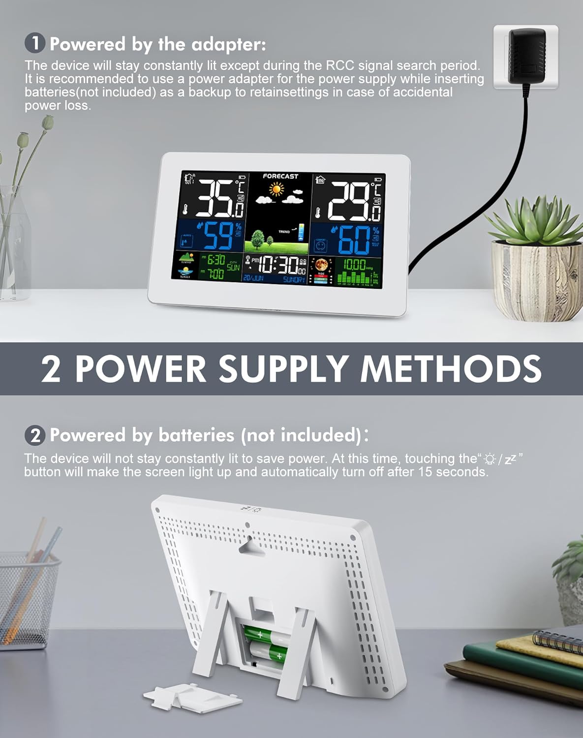 - 【2 Stromversorgungsmodi】Die funk wetterstation unterstützt zwei Energiemodi (Batterie oder Stromeingang), die auch bei Stromausfall drucklos genutzt werden können. Darüber hinaus ist es mit einem USB-Anschluss zum Laden elektronischer Geräte