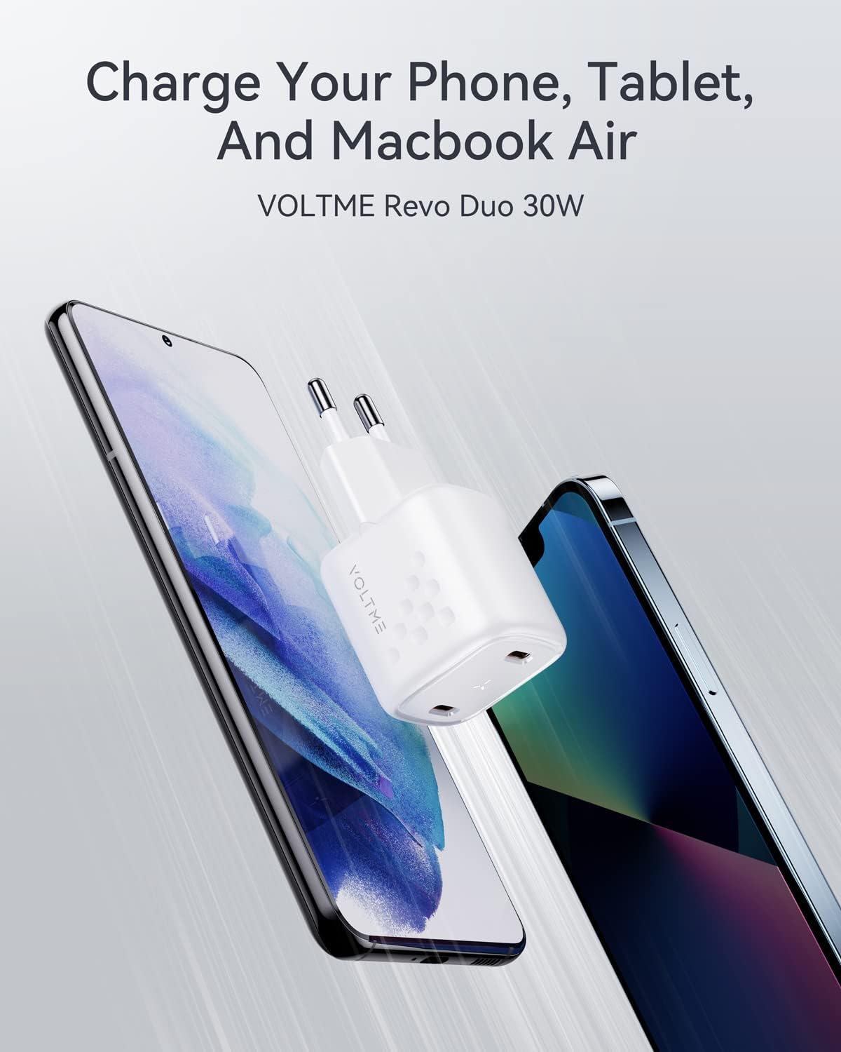 - 3x schneller & 2 USB-C: 30W doppel-usb c schnellladegerät unterstützt das PD 3.0-Protokoll und das QC 3.0-Protokoll. Sie können 2 Geräte gleichzeitig aufladen, um das iPhone 14 in 30 Minuten auf 58% aufzuladen. Dies ist 3-mal schneller als das