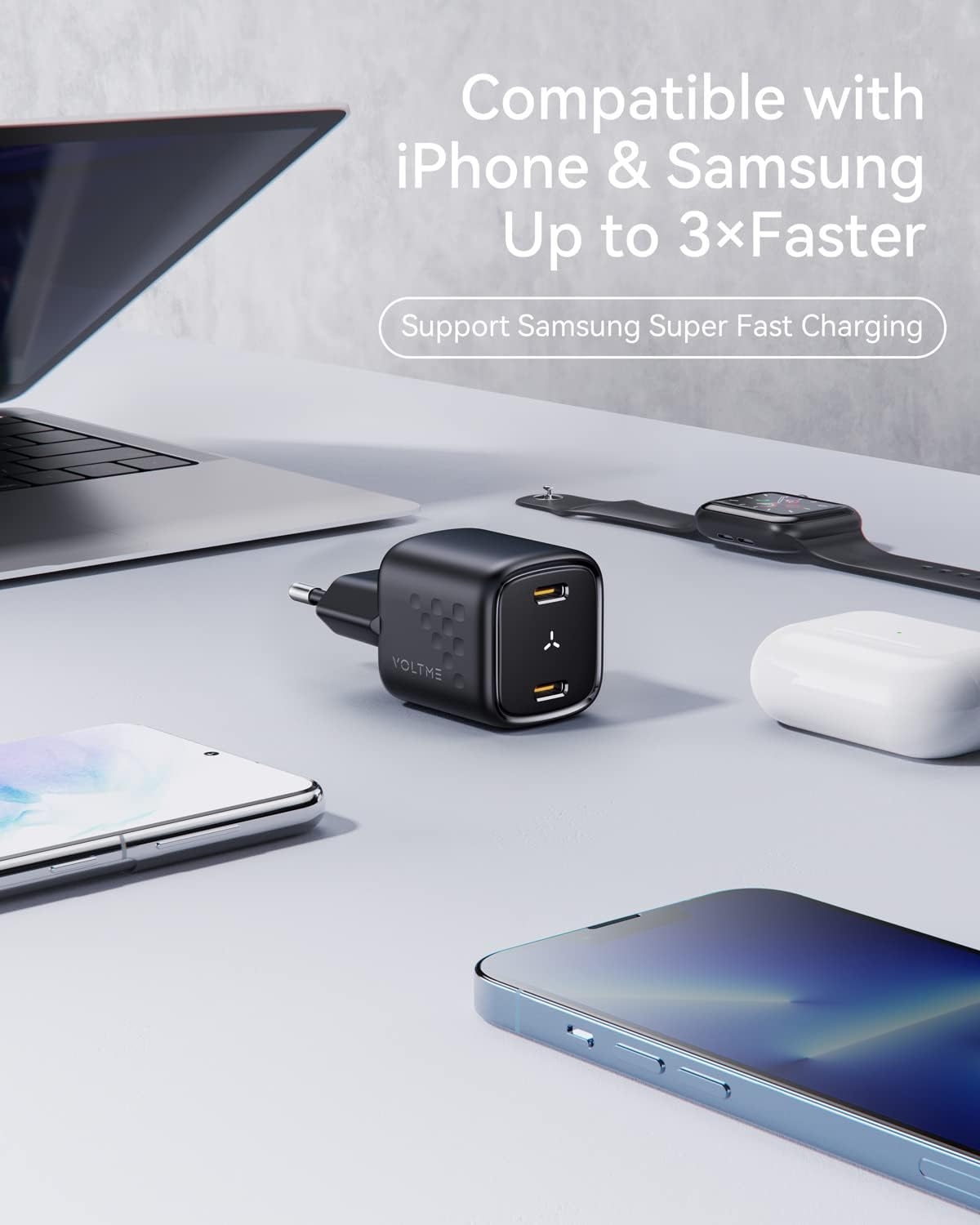 - GaN III Technologie: GaN-Halbleiter sind wesentlich schneller und sicherer als herkömmliches Silizium. Es ist 20 mal mehr umgewandelt als herkömmliches Silizium in Bezug auf die Stromumwandlung. Sie reduzieren auch den Energieverbrauch um 40%, so dass