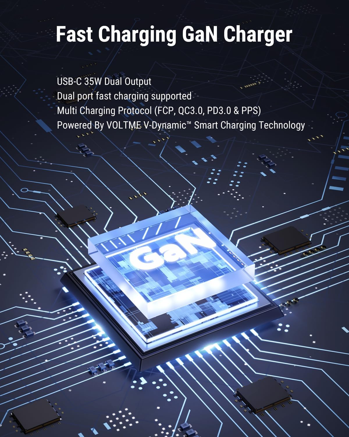 VOLTME USB C Ladegerät Doppelt 35W V-Dynamic GaN III Ladegerät, 2-Port USB C Schnellladegerät PD3.0
