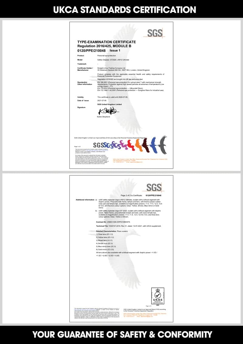 - EN166ft zertifiziert, Fassung und Scheibe gekennzeichnet. Entspricht EU Bestimmungen zur Anwendung im Industrierahmen innerhalb der EU.