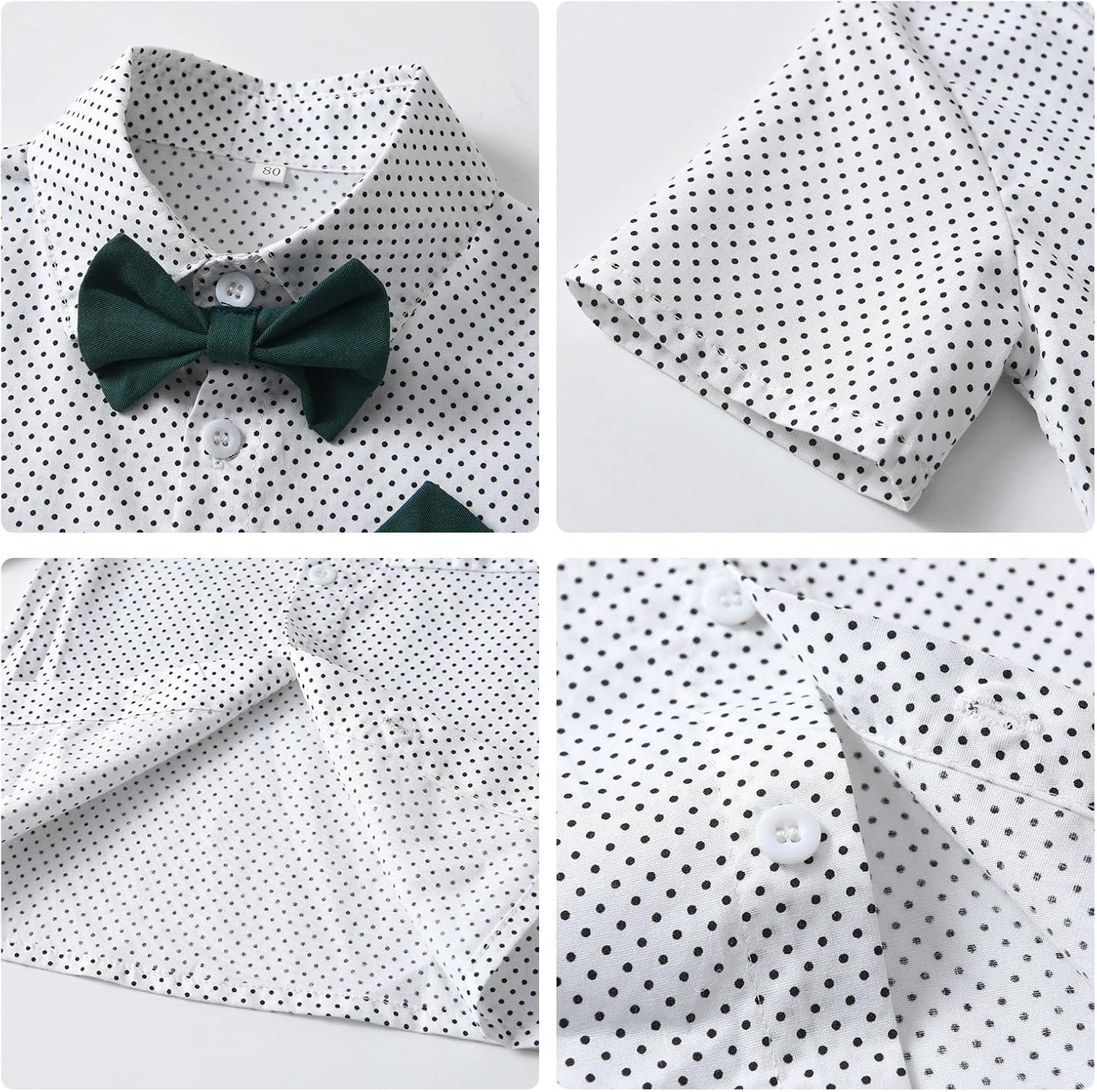 - Herrenanzug für Baby Jungen: Kurzarmhemd + abnehmbare Fliege + Shorts + Hosenträger.