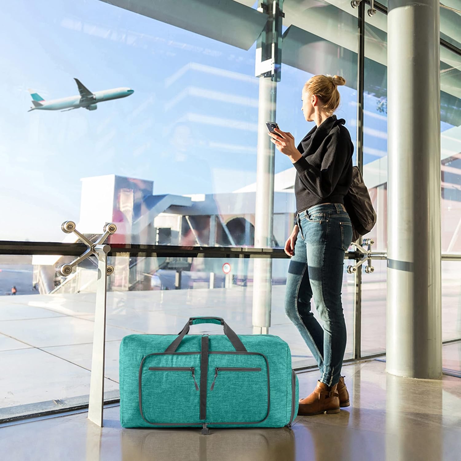 Vomgomfom Leichte Faltbare Reisetasche Gross 65L Sporttasche Damen Herren mit Schuhfach, Travel Duff