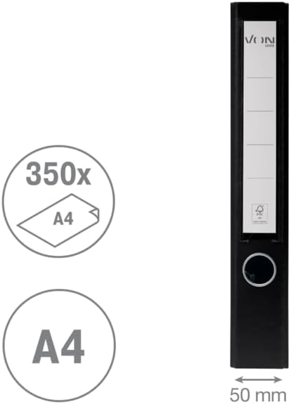 - Lieferumfang: 25 x VON 2-Ring Ordner A4, Karton mit Kunststoffeinband, schmaler Aktenordner, 50 mm Rückenbreite, Schwarz, 10560095