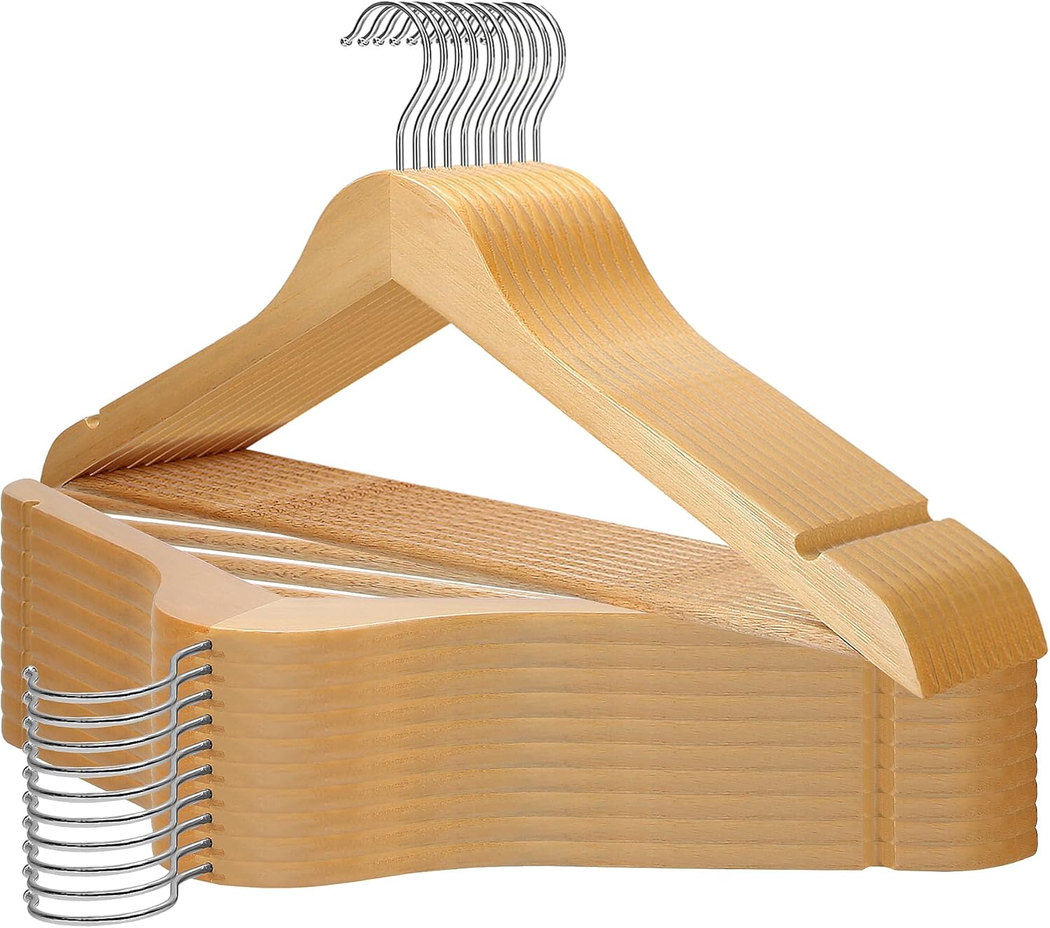 - ✅ 360 Grad drehbarer Haken: Wenden der Kleidung, ohne den Holzbügel abnehmen zu müssen