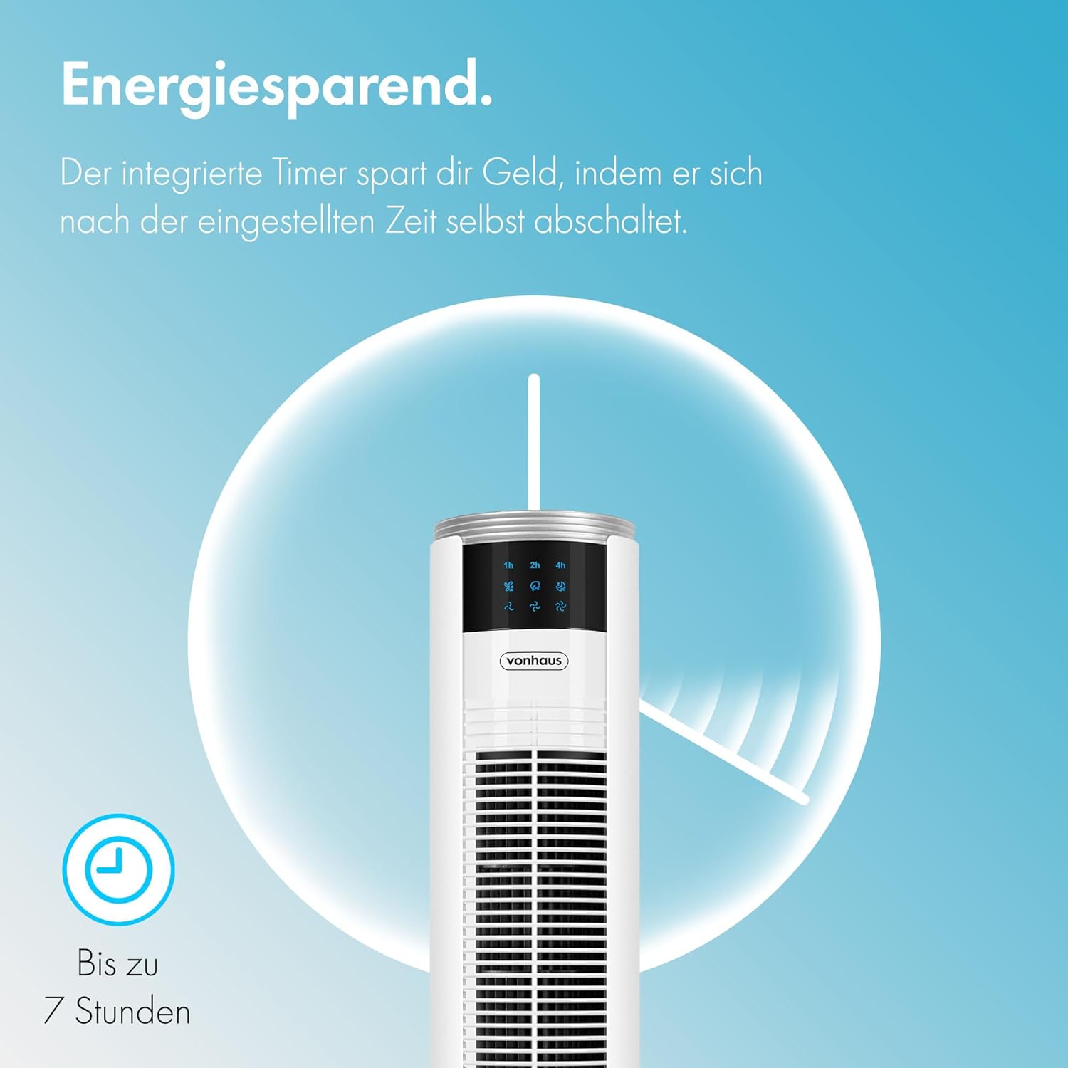 - PRAKTISCHER TIMER: Der VonHaus Standventilator hat einen einstellbaren 7-h-Timer, mit dem du den Ventilator mit gutem Gewissen laufen lassen kannst. Stelle die Betriebszeit ein und spare Strom.