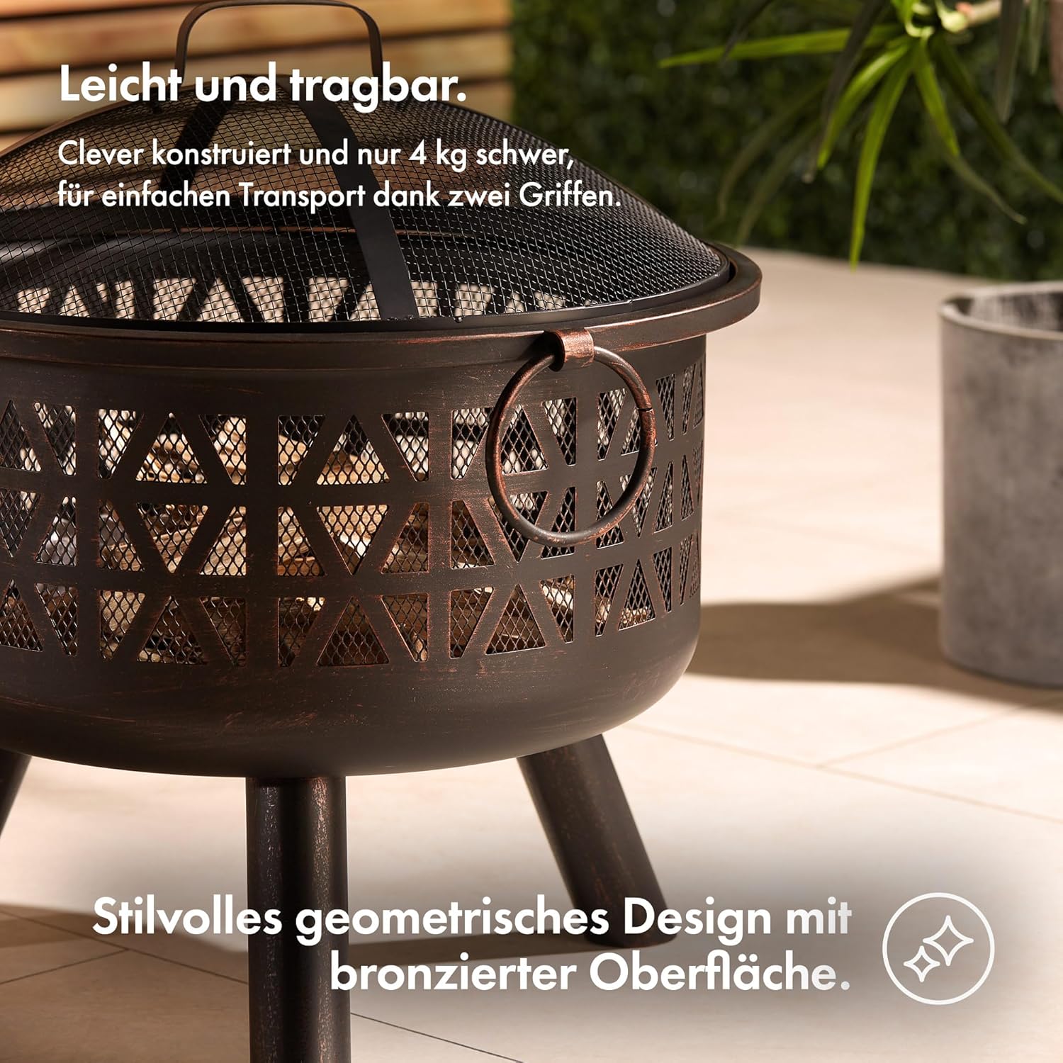 - FLEXIBLE WÄRME: Nutzen Sie die Feuerschale überall im Garten, auf Terrasse oder Decking, um an kühlen Abenden gemütliche Wärme zu geniessen. Dank ihrer handlichen Grösse lässt sie sich problemlos dorthin bewegen, wo sie gerade am besten zu Ihrer