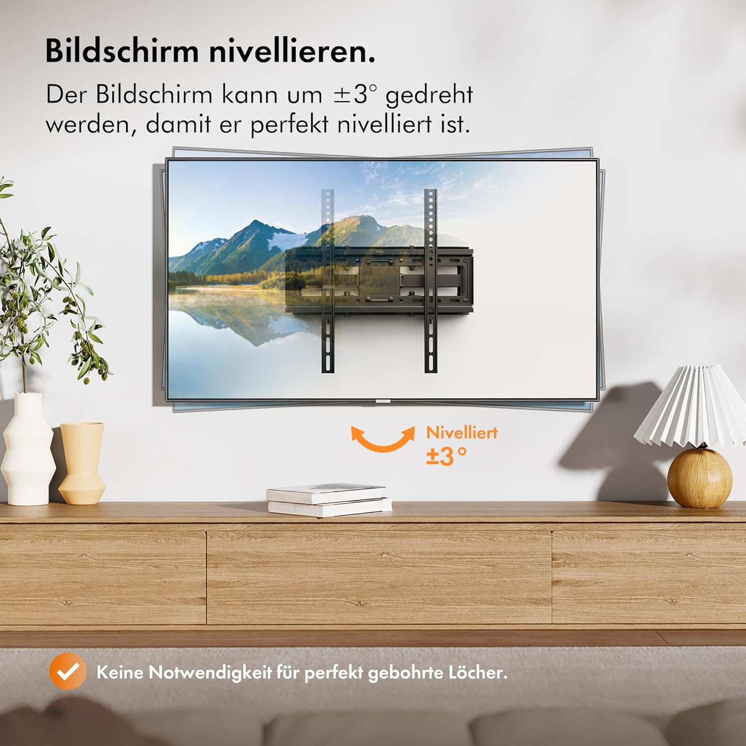 - STARKE & STABILE FERNSEHER WANDHALTERUNG: Deine Full-Motion-TV-Wandhalterung besteht aus langlebigem kaltgewalztem Stahl und ist somit extrem robust. Somit trägt die Wandhalterung TVs bis 45 kg. So kannst du den ergonomischen Verlängerungsarm unbesorgt