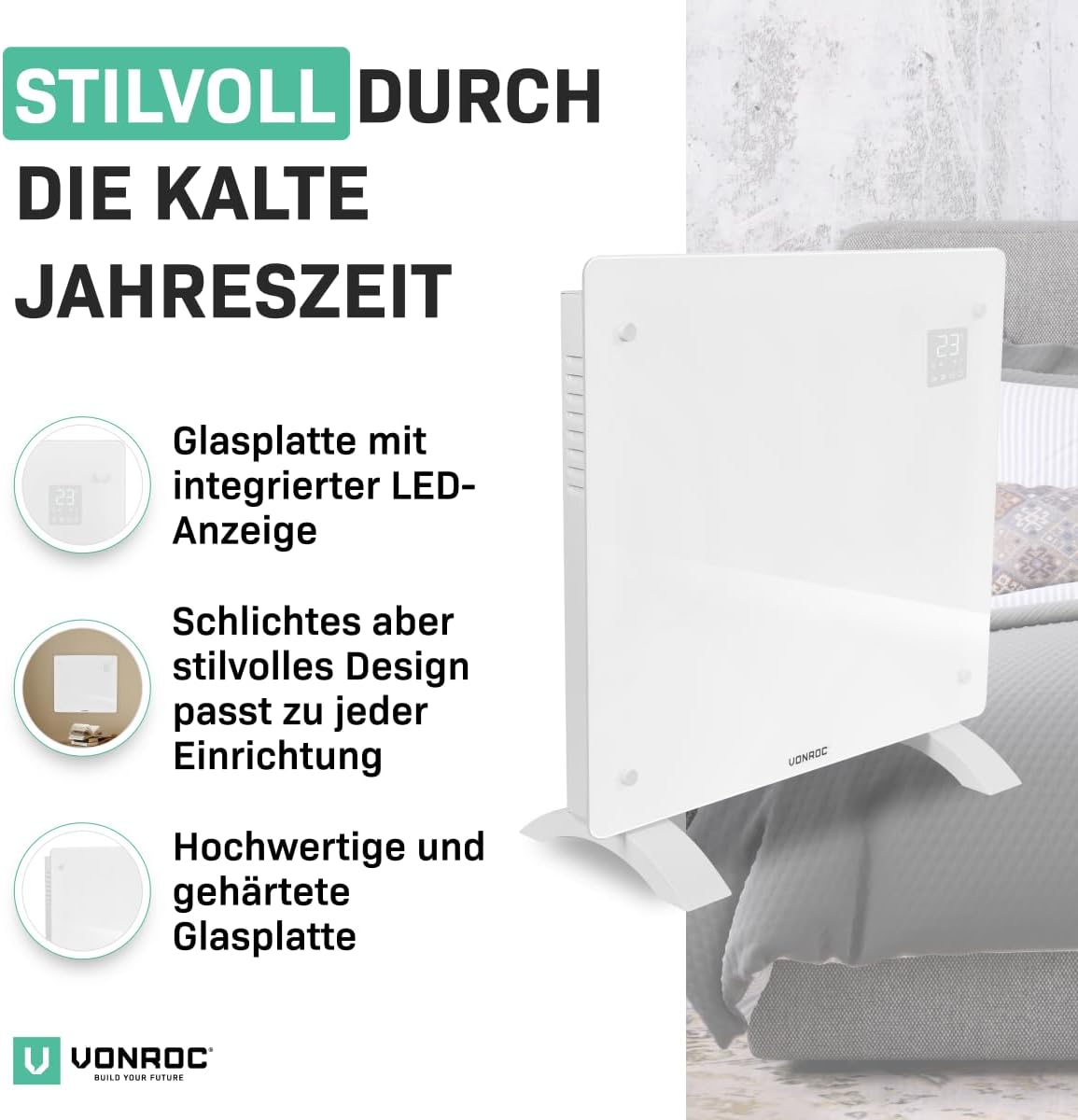 - SCHAFFEN SIE EIN GEMÜTLICHES ZUHAUSE - Bestellen Sie jetzt und erleben Sie, wie unser Glasplatten-Konvektorheizgerät Ihnen wohlige Wärme und Stil in Ihr Zuhause bringt. Jetzt bestellen und sich über behagliche Wärme freuen!