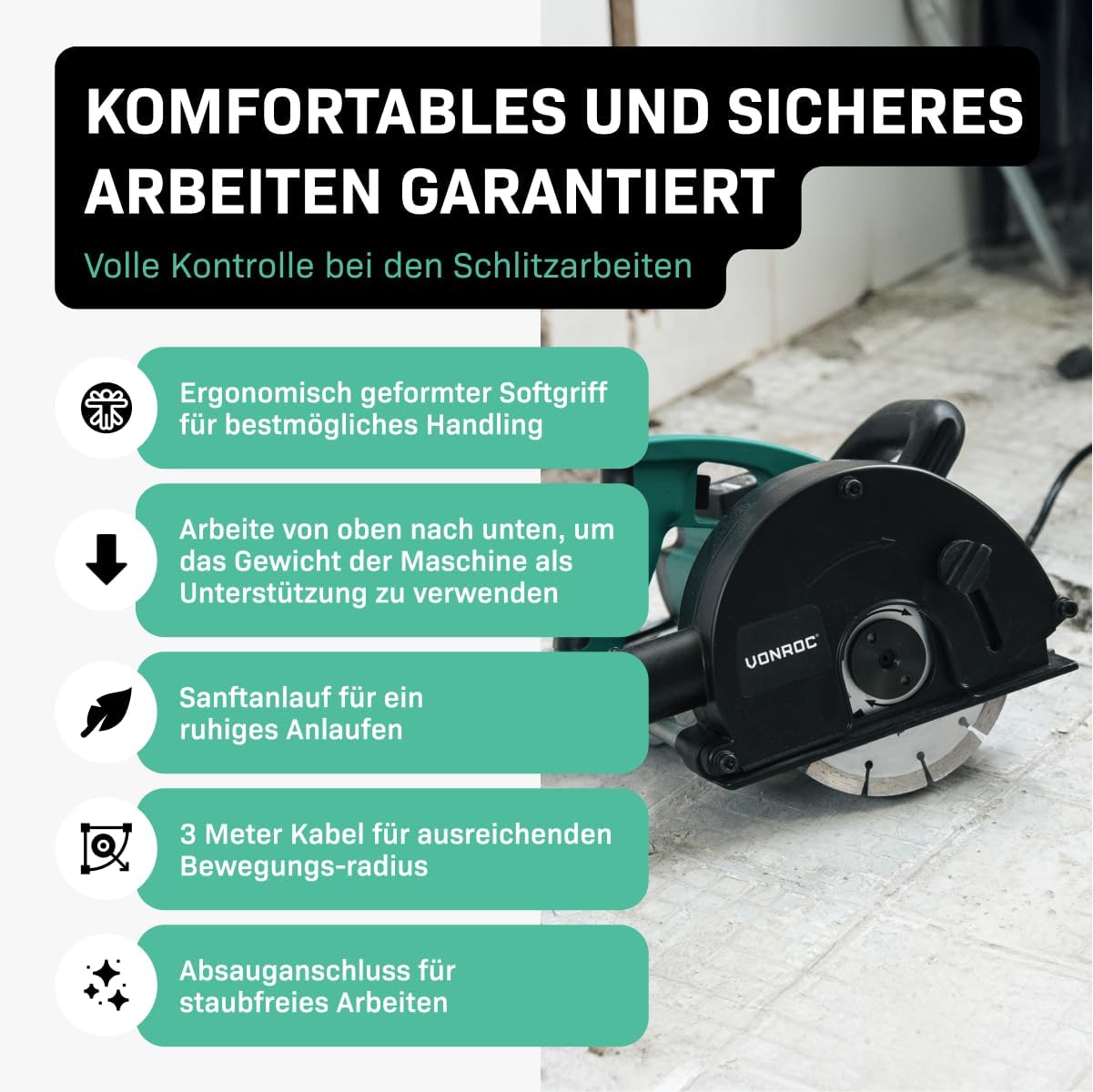 - BESTÄTIGTE KUNDENZUFRIEDENHEIT - Tausende von Handwerkern verlassen sich auf die VONROC Wall Slotter für ihre Arbeiten und haben damit positive Ergebnisse erzielt. Erleben Sie selbst die Begeisterung anderer Profis und profitieren Sie von der