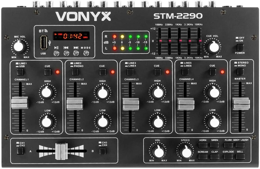 - Vonyx STM2290 DJ Mixer mit Bluetooth und MP3 Player für jeden DJ-Einsteiger. Das Mischpult verfügt über 8 Kanäle zum Anschluss von Audioquellen. Soundeffekte machen den Mixer perfekt für mobile DJ