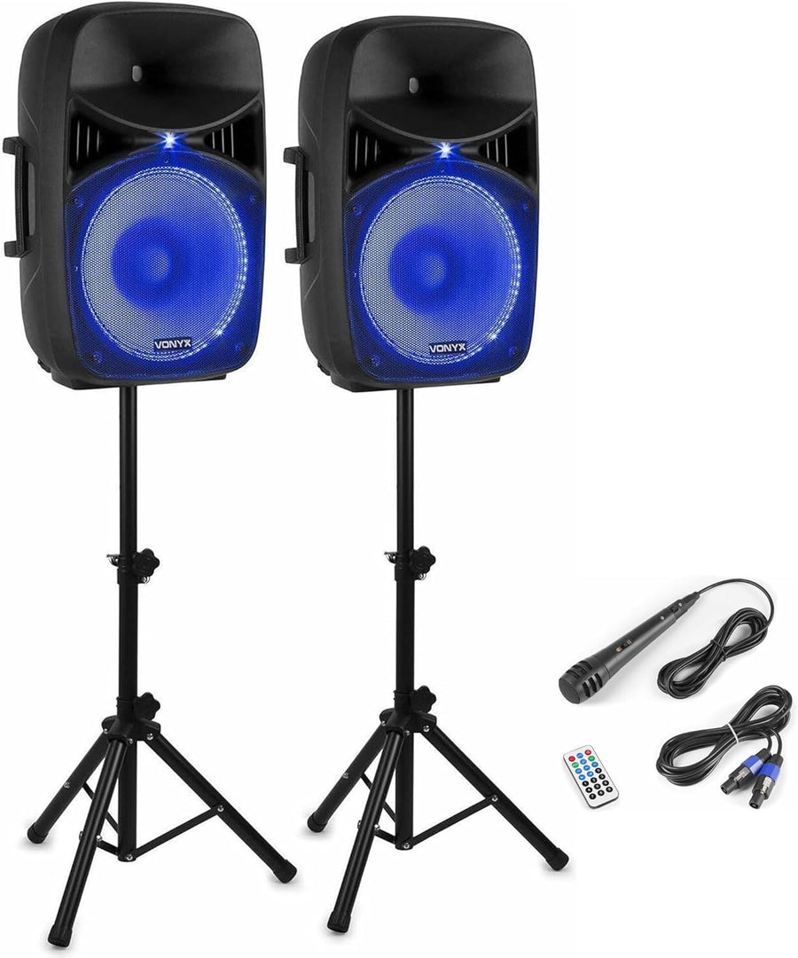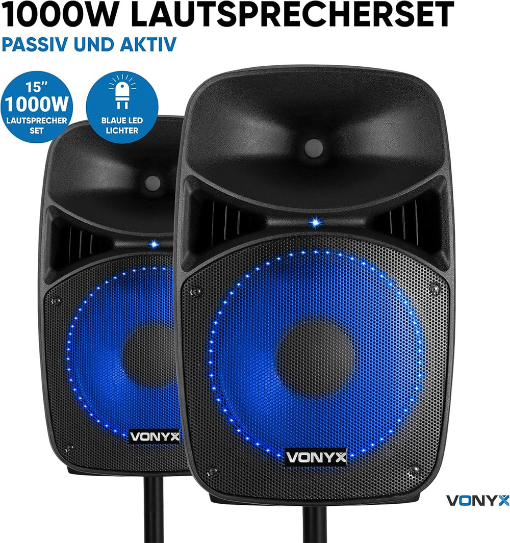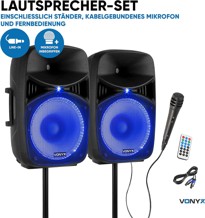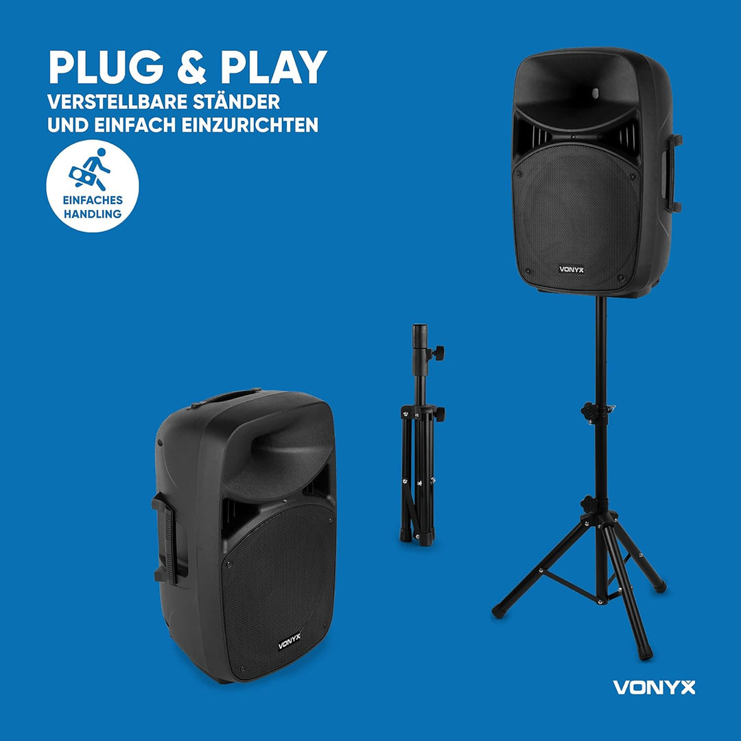 - Die Vonyx VPS152A PA Anlage mit Stativ als Lautsprecherset, ist mit einer Bluetoothfunktion ausgestattet. Somit können Sie Ihre Lieblingslieder von einem Telefon oder Tablet drahtlos wiedergeben