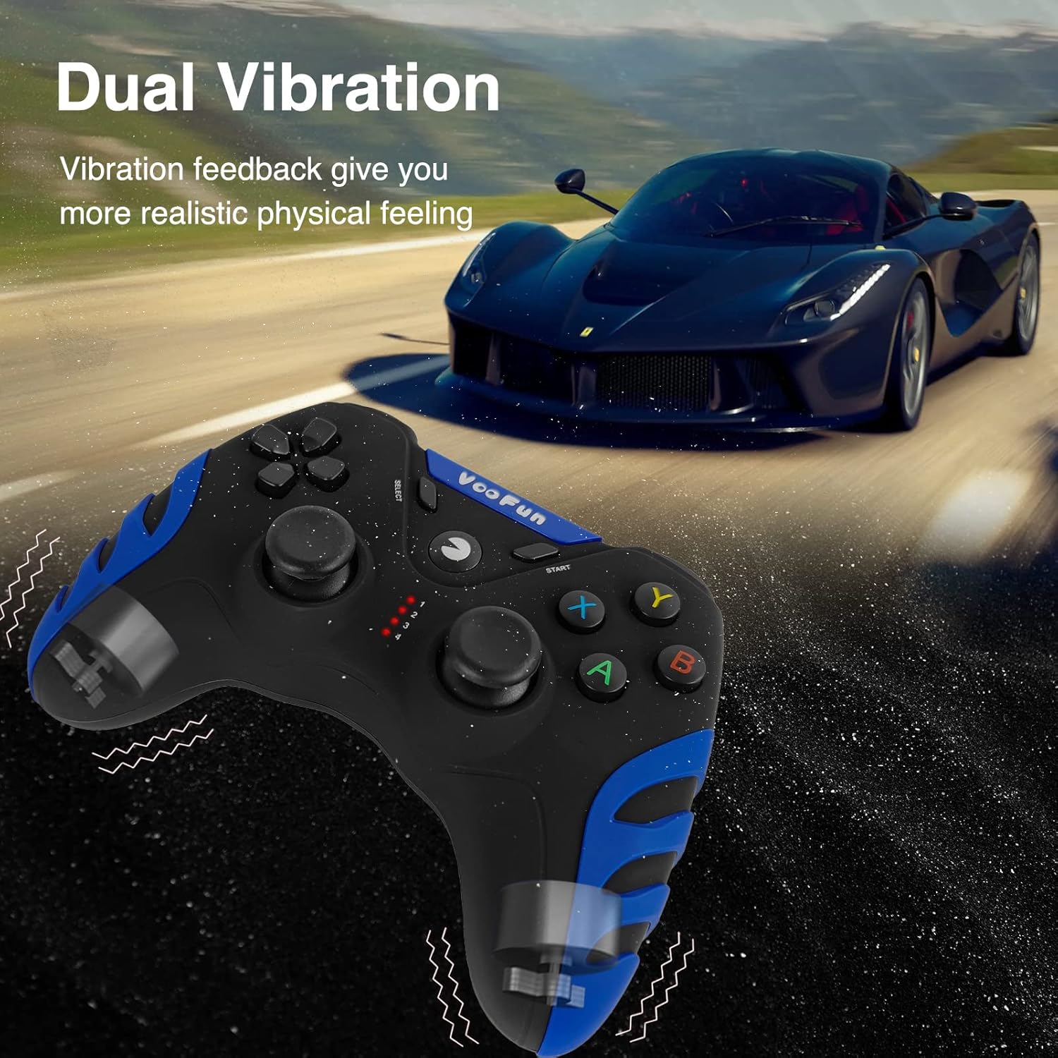 - Dual Vibration: Das asymmetrische Dual-Motor-Design unterstützt perfekt die vibrationsdynamische Feedback-Funktion und verbessert den Realismus von Spielszenarien. Sie werden jeden Aufprall, jede Kollision und jede Explosion spüren und Ihr Eintauchen